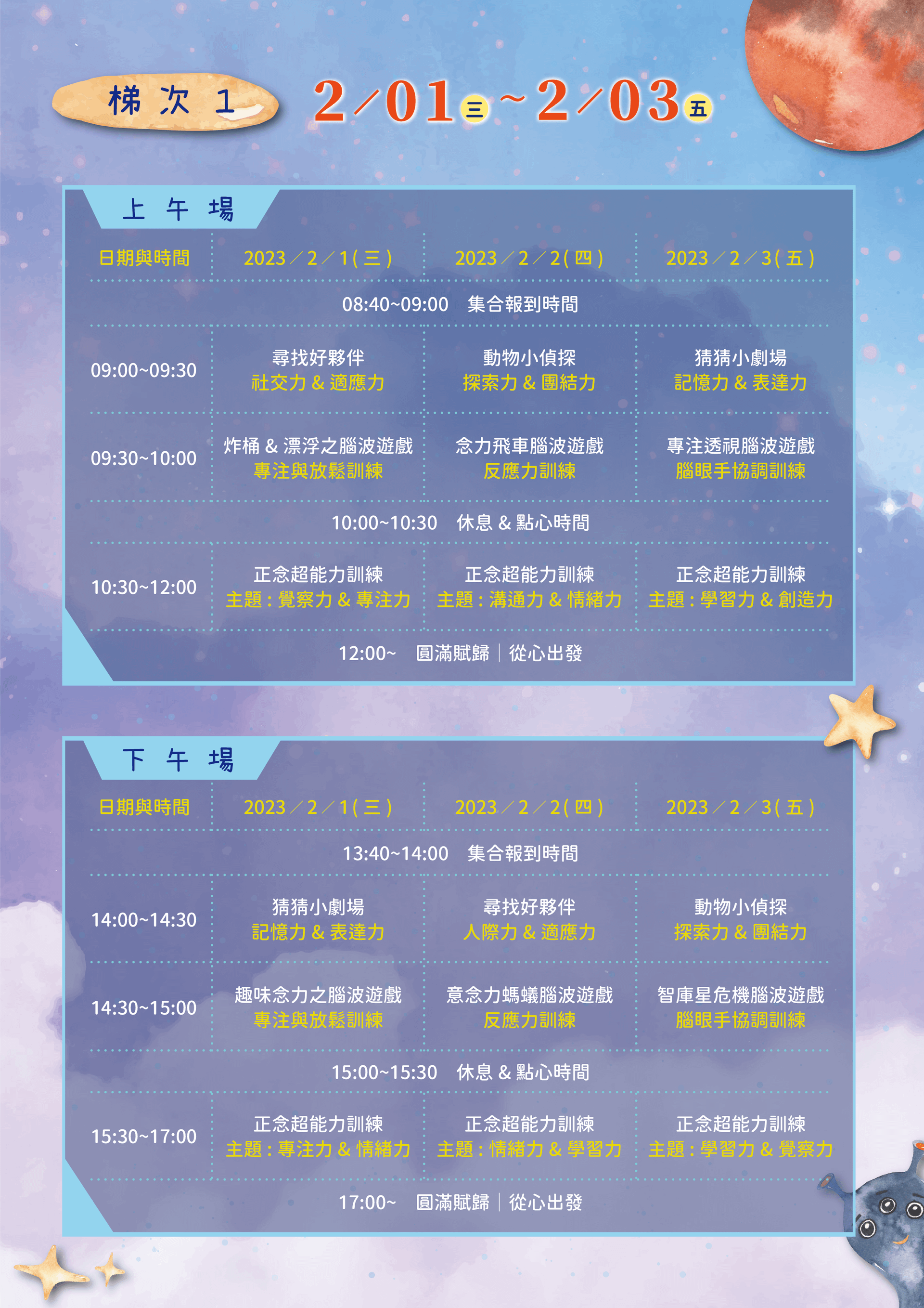 梯次1:02/01(三) ~02/03(五)