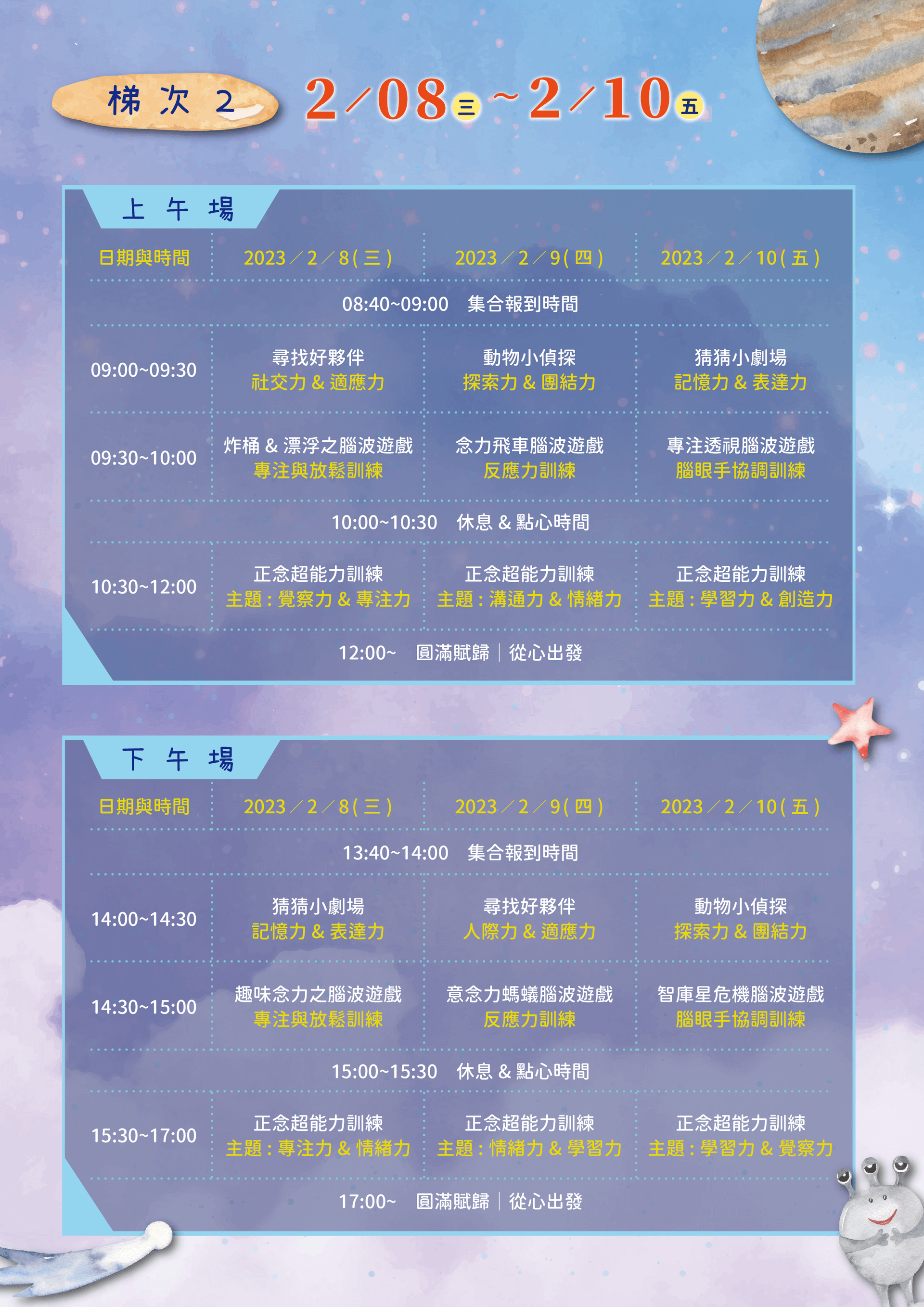 梯次2:02/08(三) ~ 02/10(五)