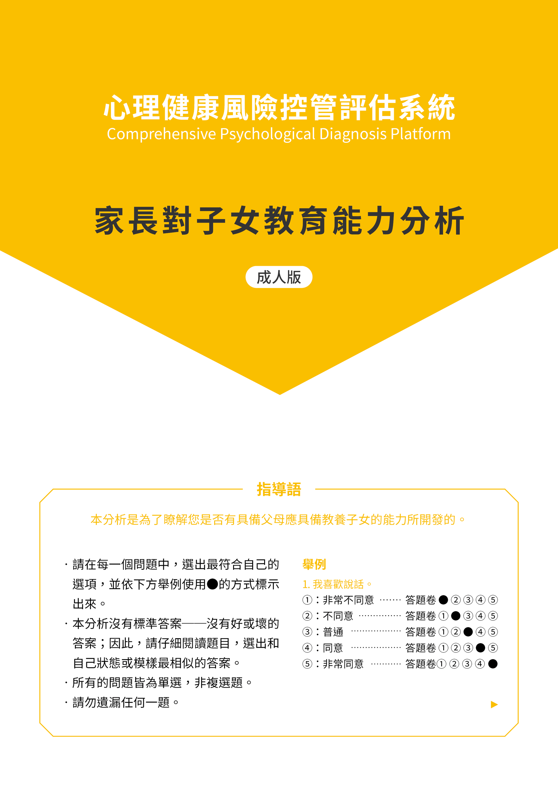 - 報告詳細內容說明,請點選" 家長對子女教養能力分析測評 - SW-II"
