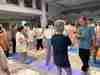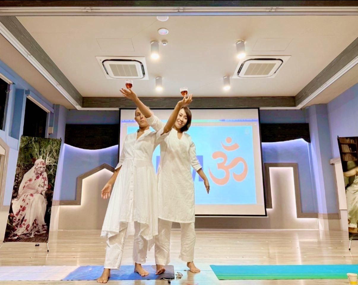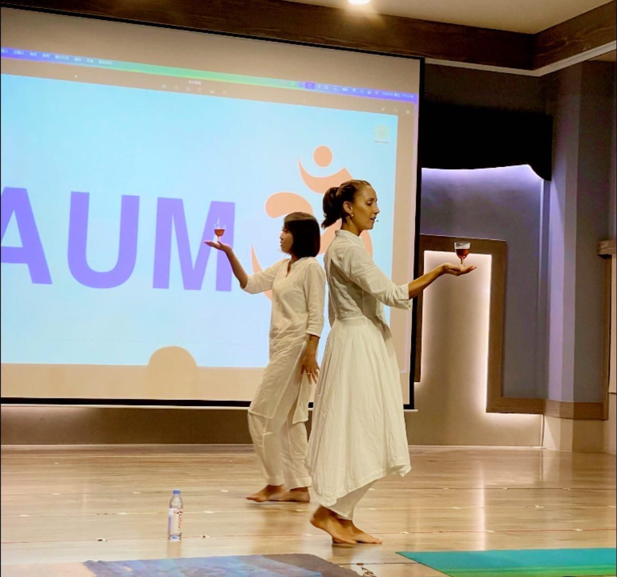 空」。心裡不免期待:今晚會以什麼樣的方式來展現呢?一踏入現場,就立刻感受到「空」的氛圍。舞台上只有 Sri Aurobindo 與 The Mother 的立像靜靜注視,舞台下只有一張張瑜珈墊,沒有華麗的佈置。或許,這正是主辦方的巧思——讓每一顆參與者的心,成為這場夜晚唯一的裝飾。