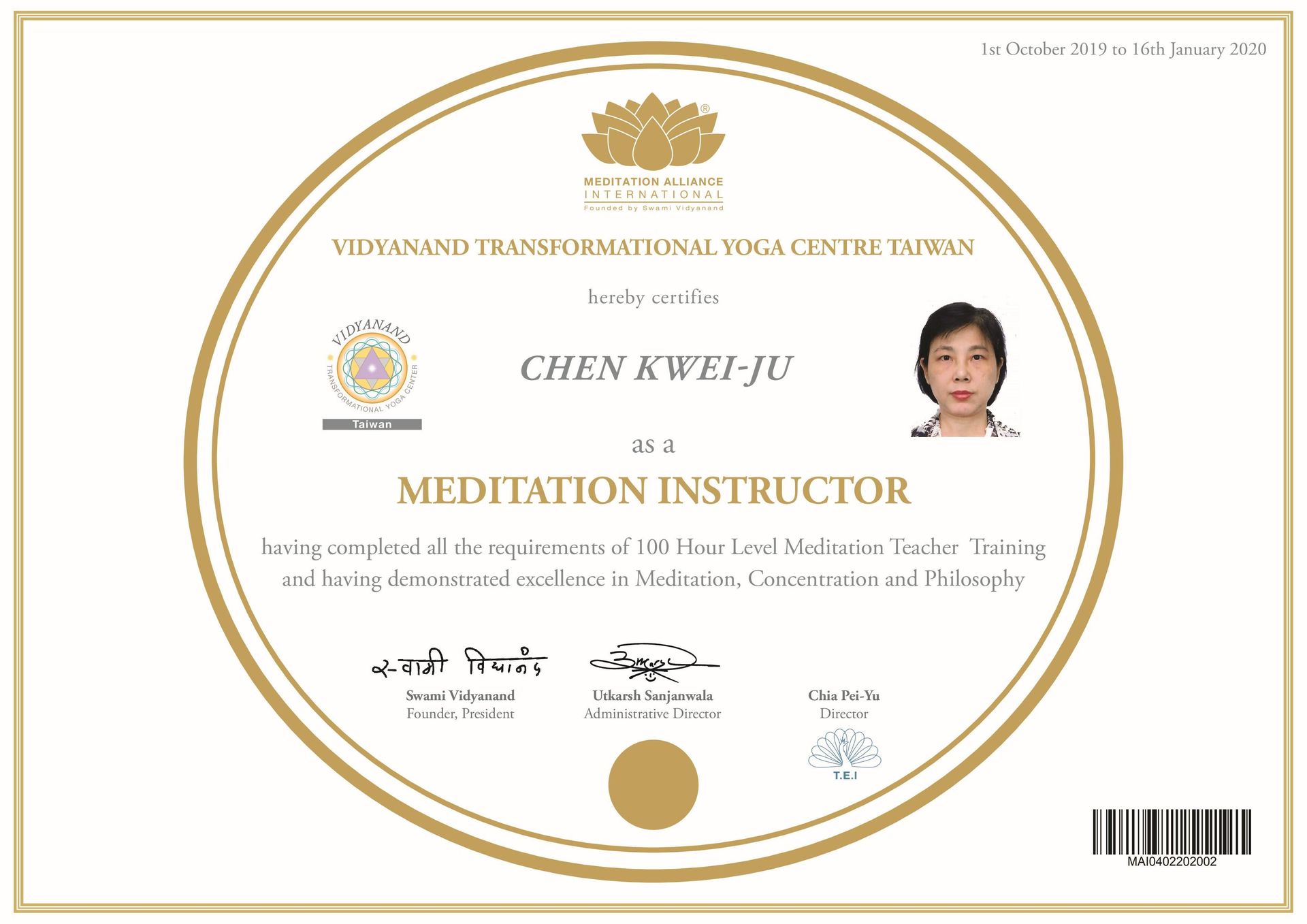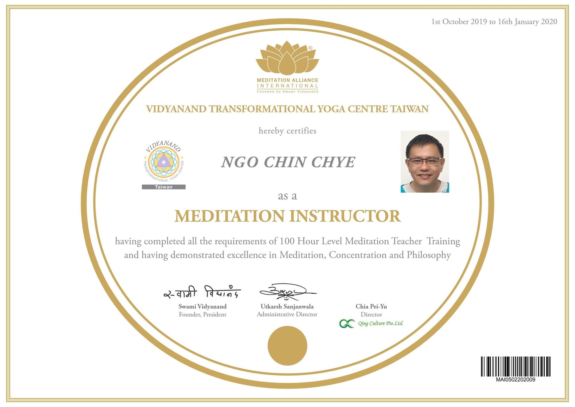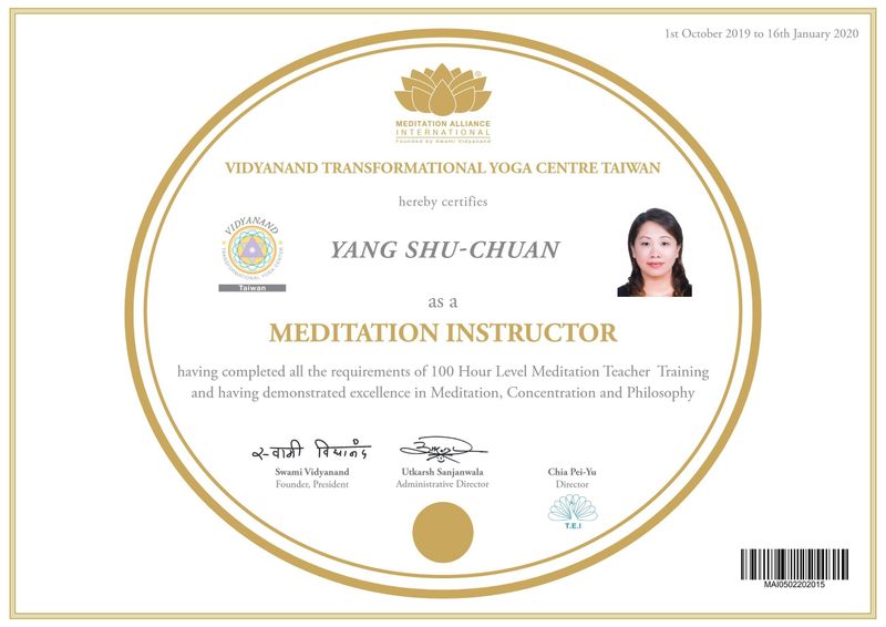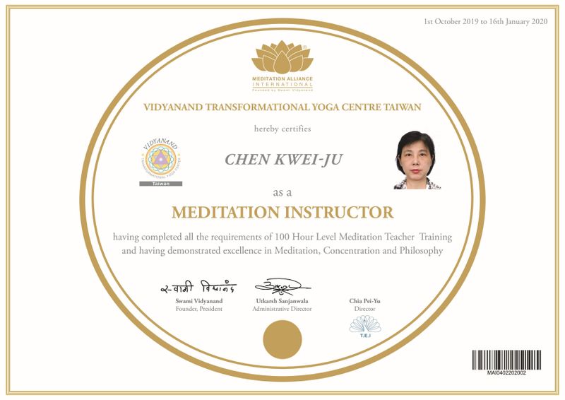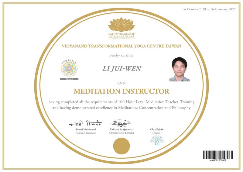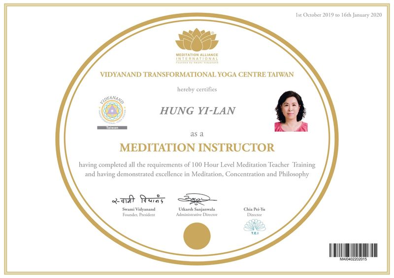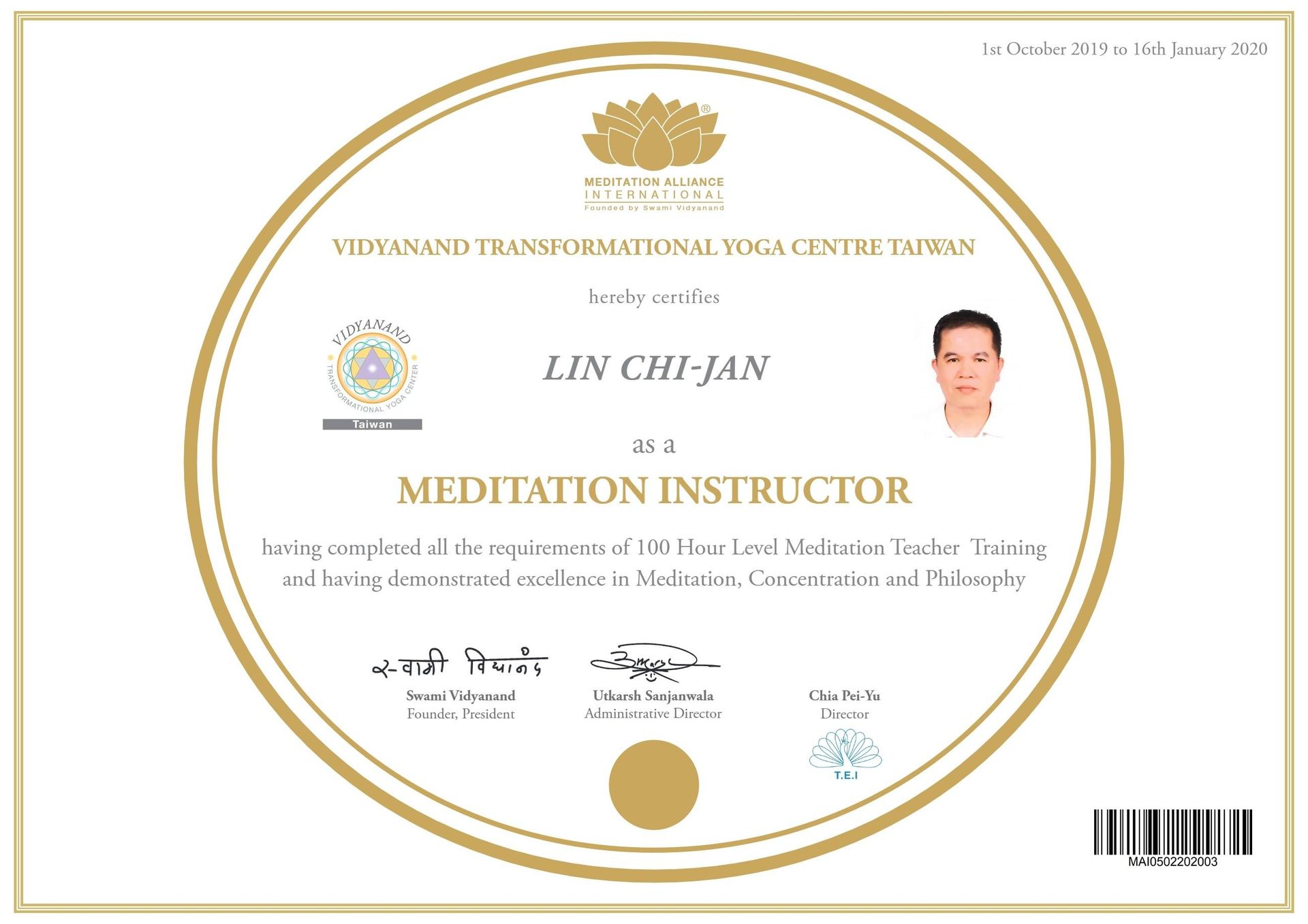 《2020 結業證書》MAI 100 小時國際冥想靜心指導員課程