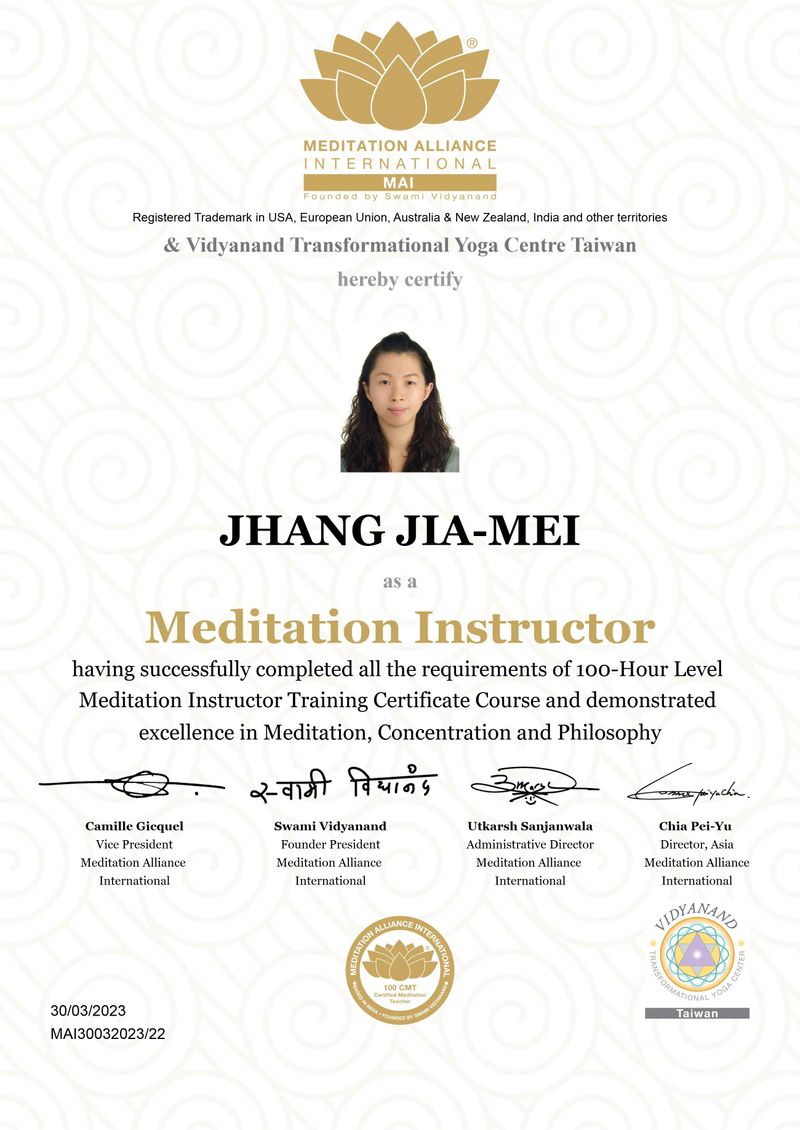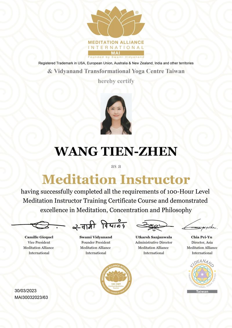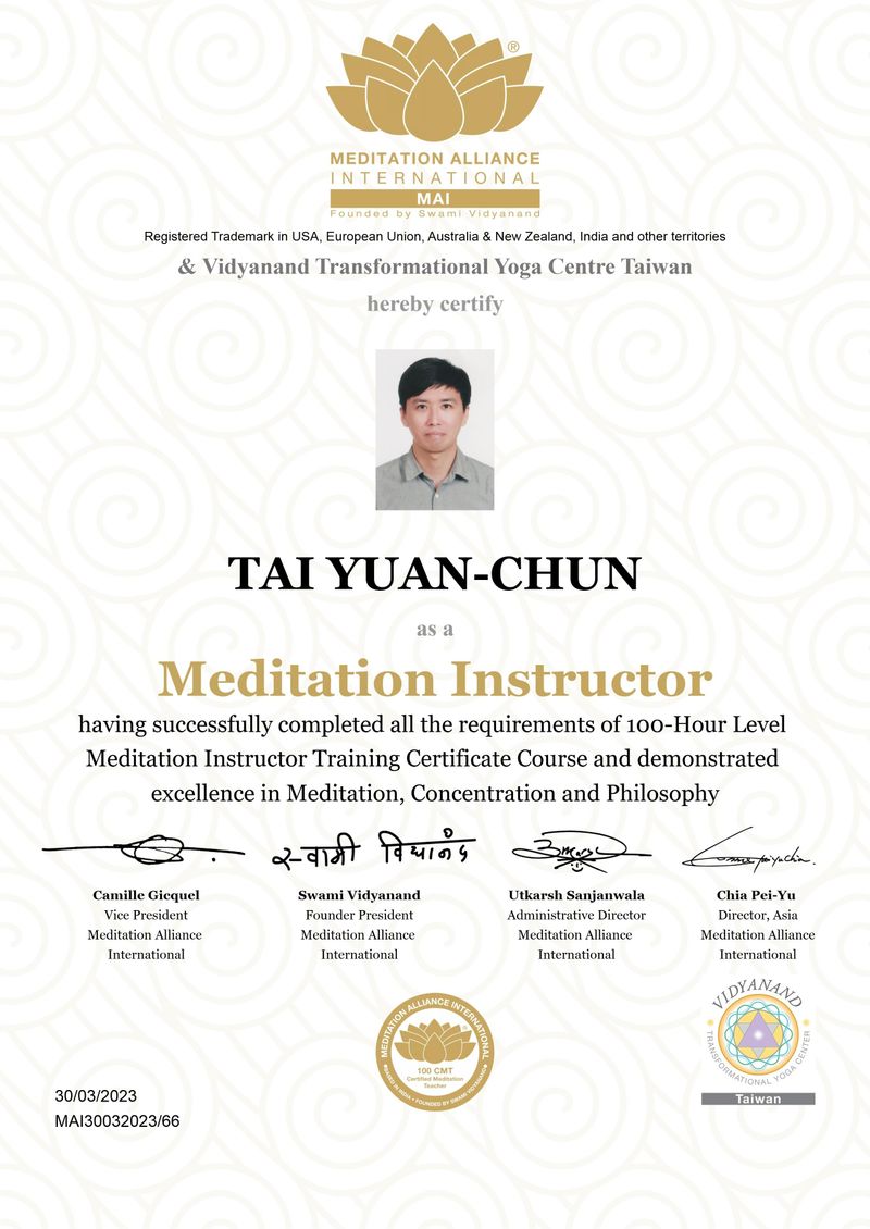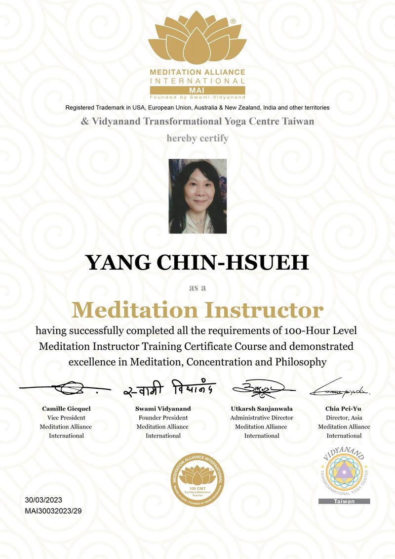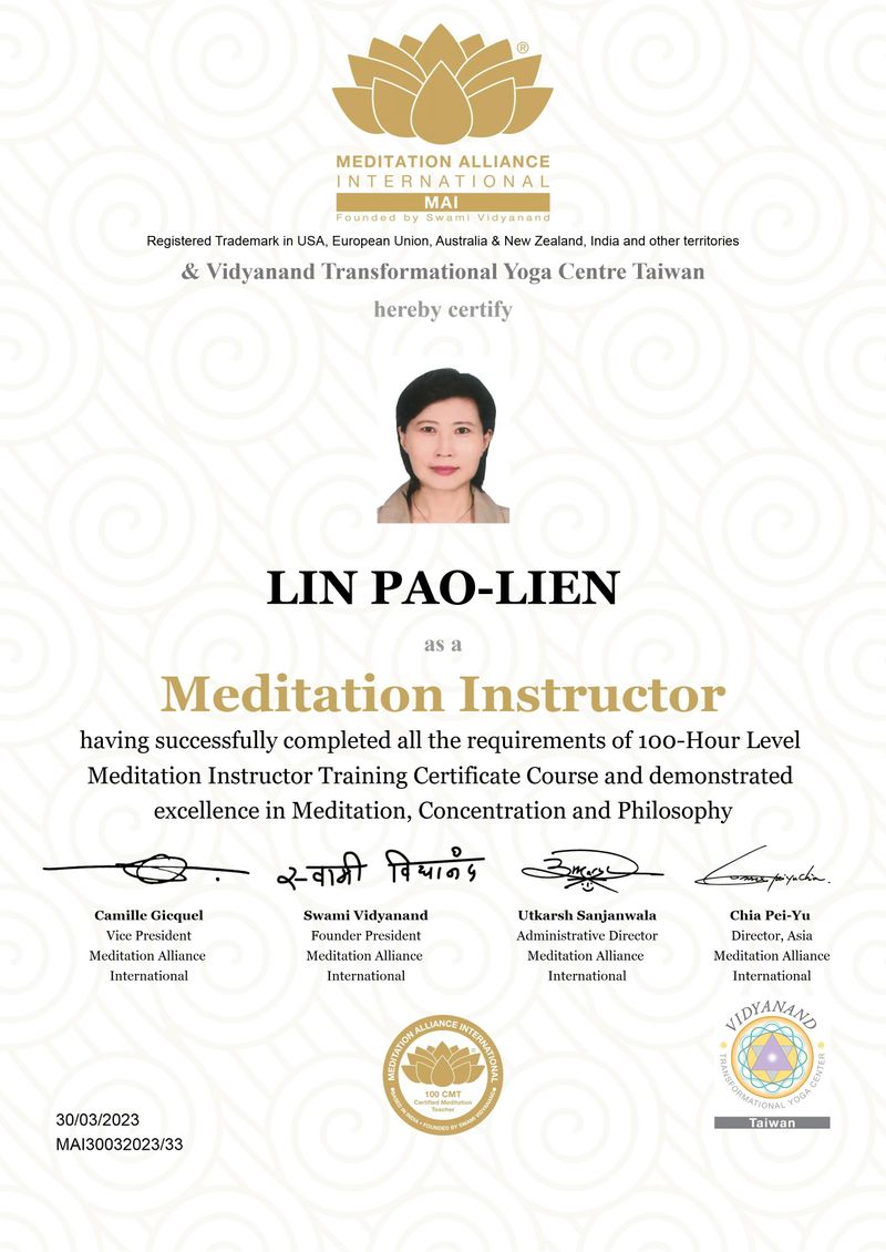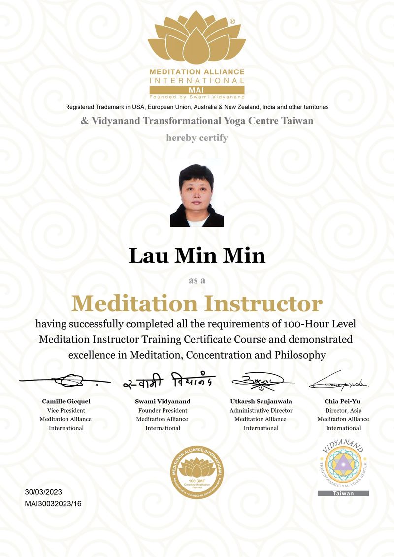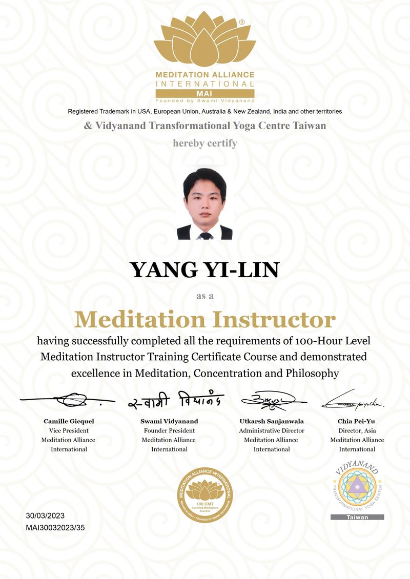《2023結業證書》MAI 100 小時國際冥想靜心指導員課程