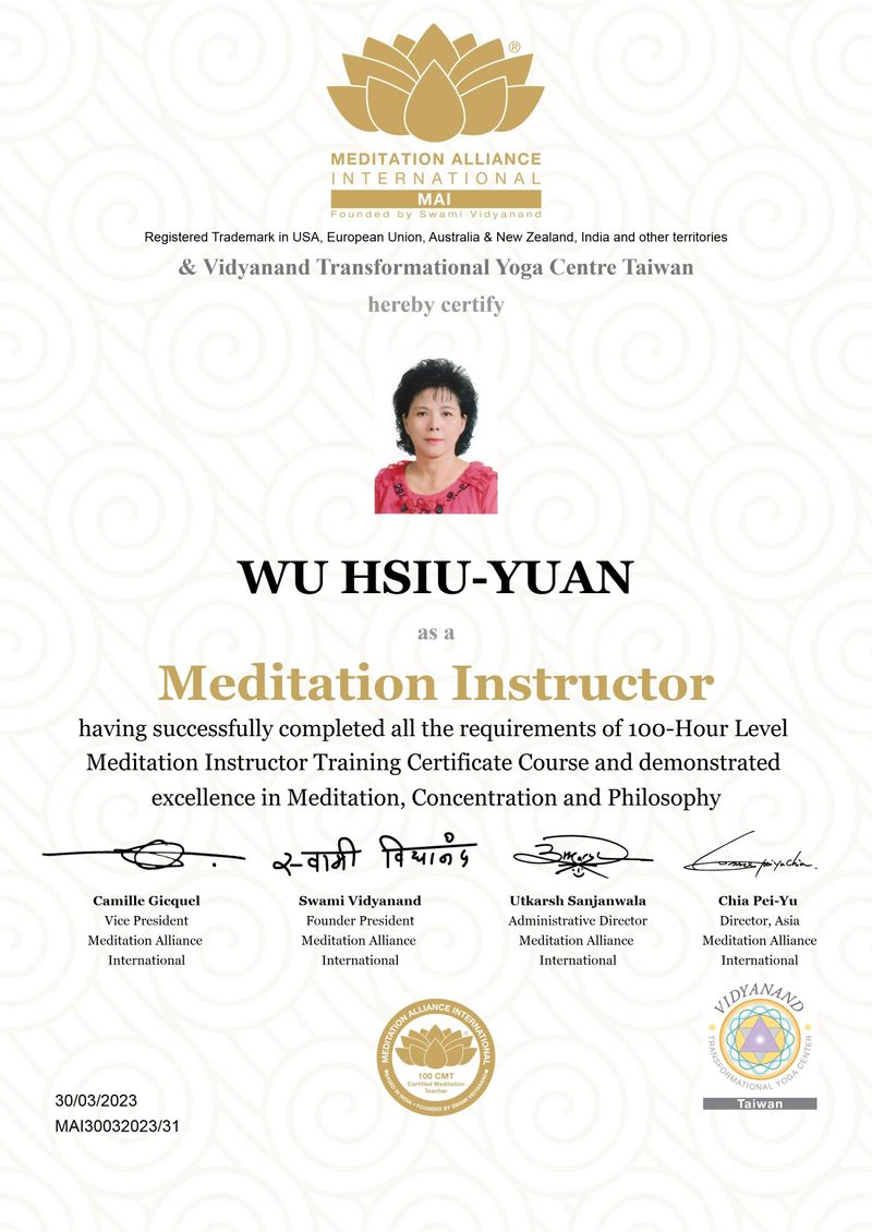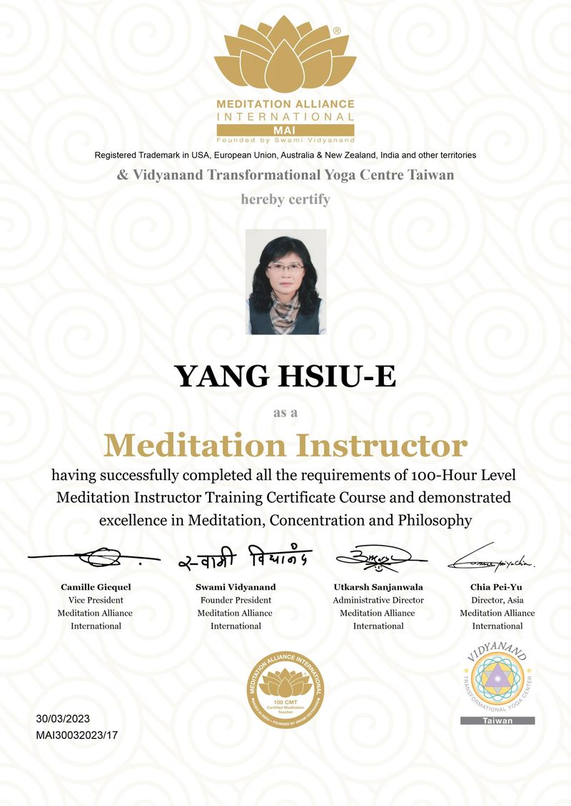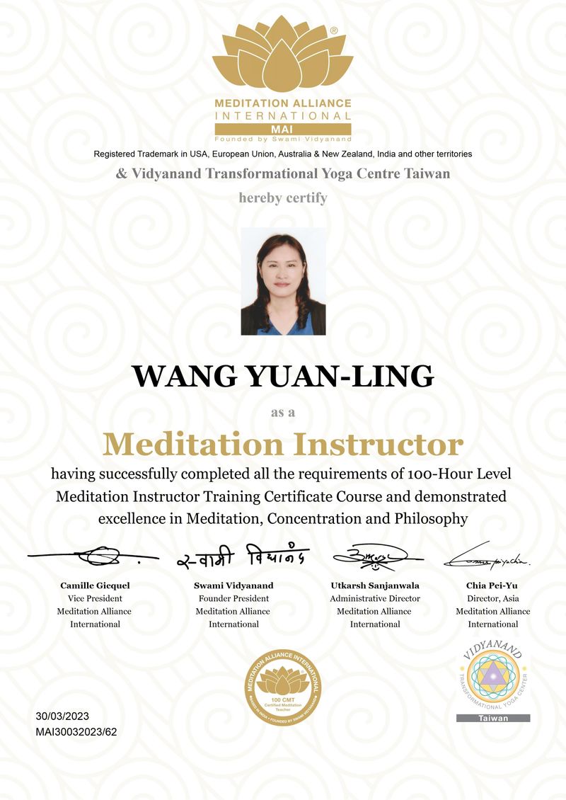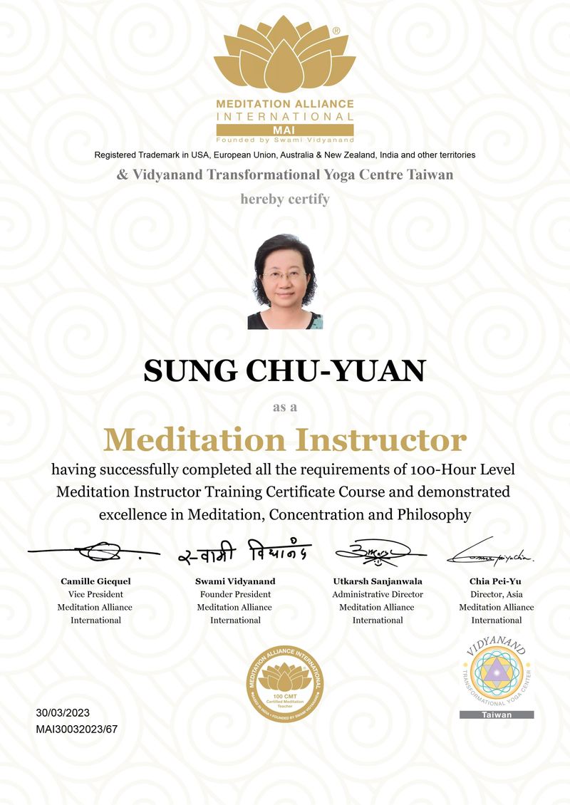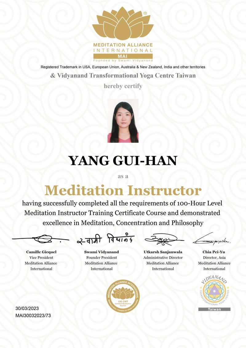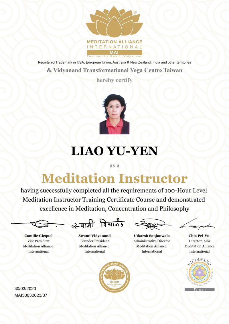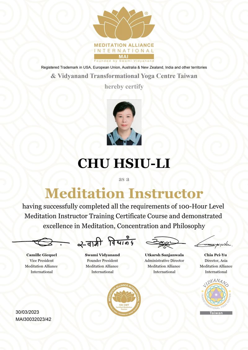 《2023結業證書》MAI 100 小時國際冥想靜心指導員課程