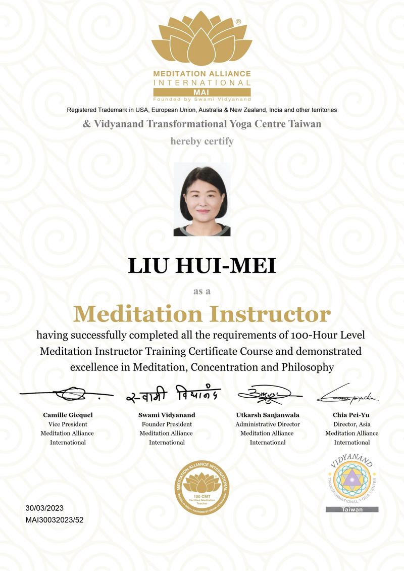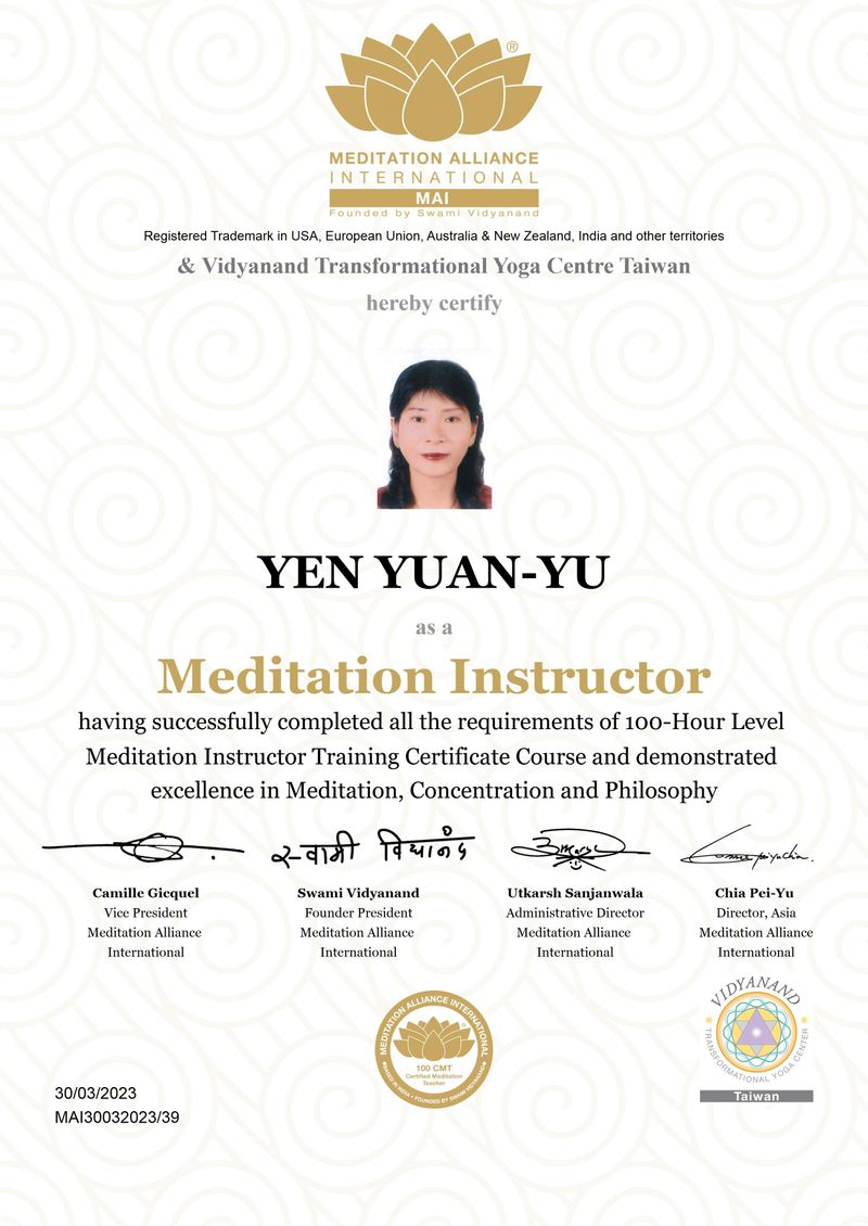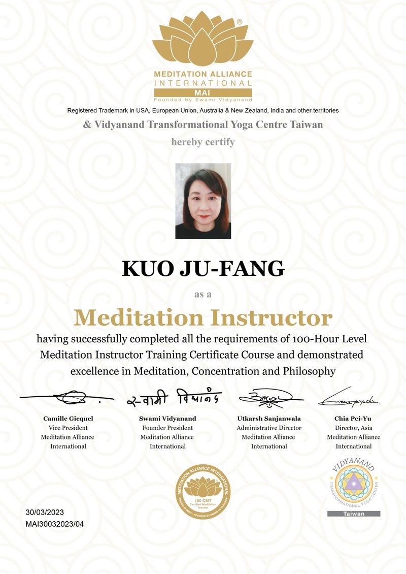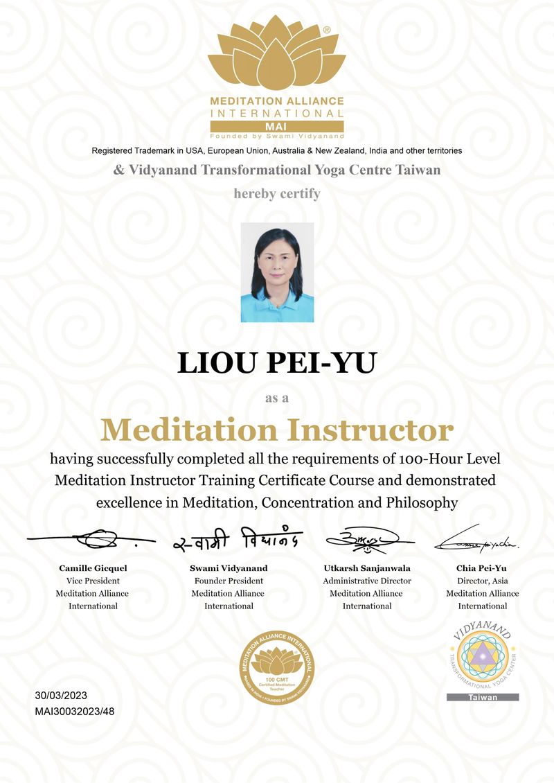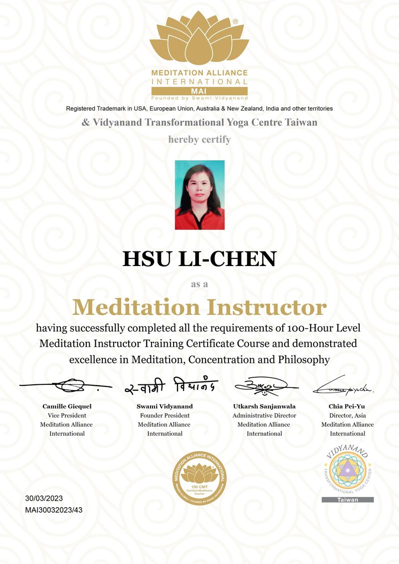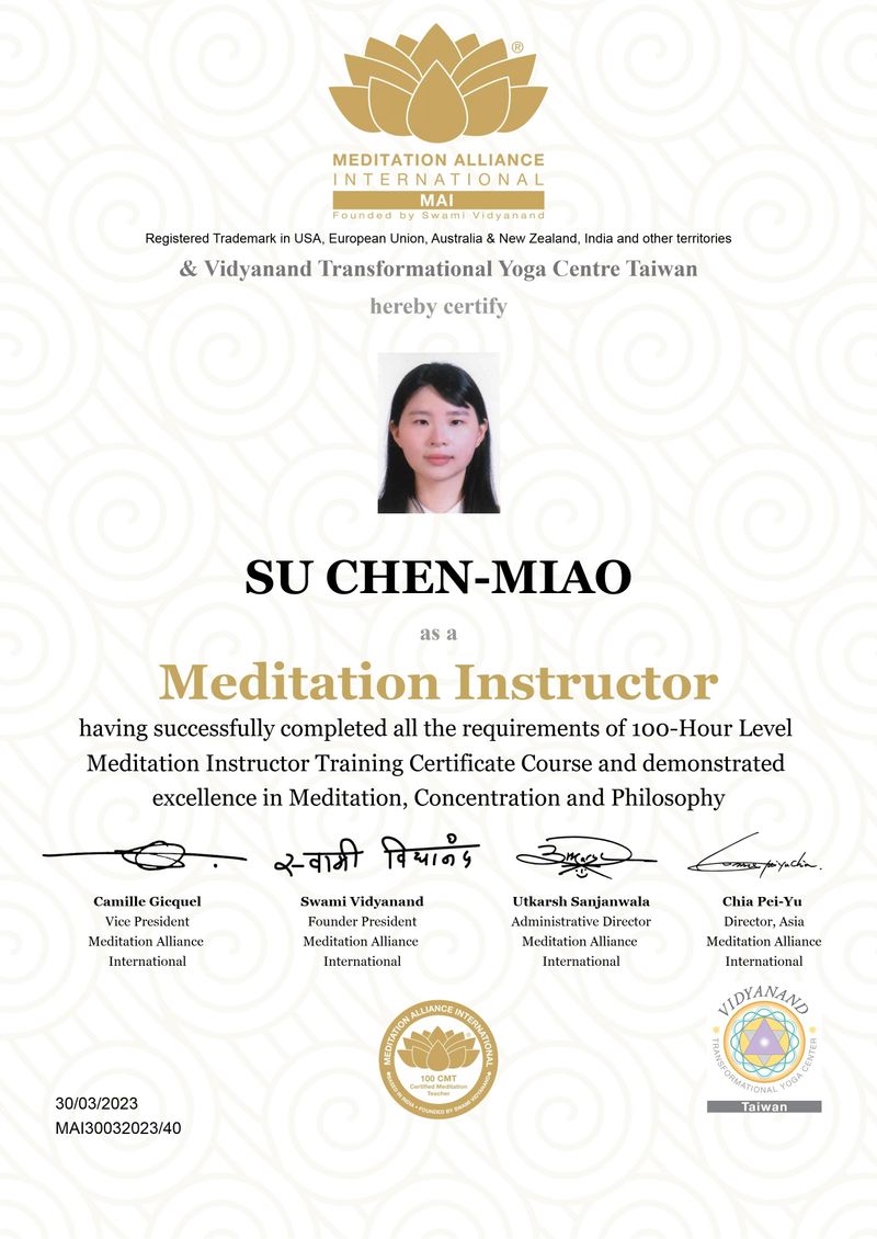 《2023結業證書》MAI 100 小時國際冥想靜心指導員課程