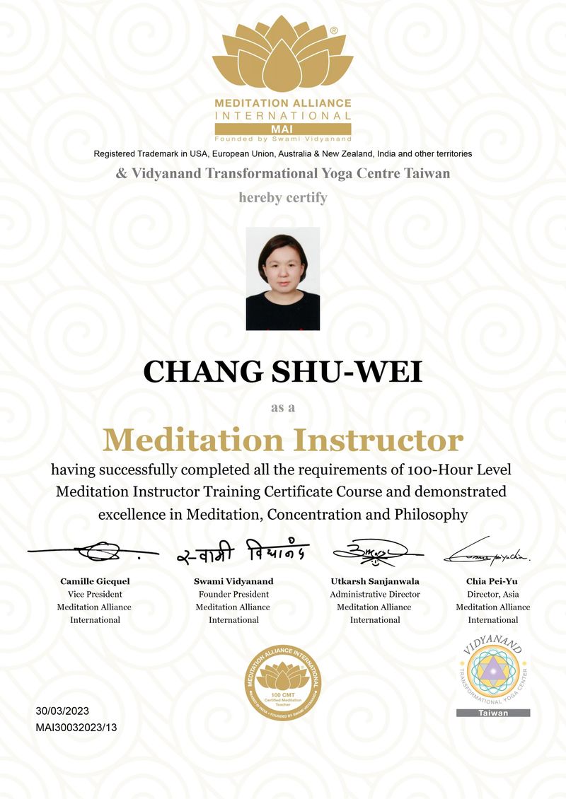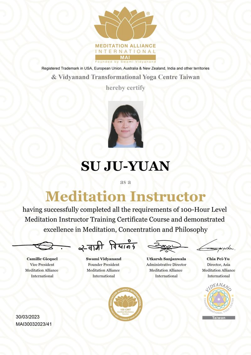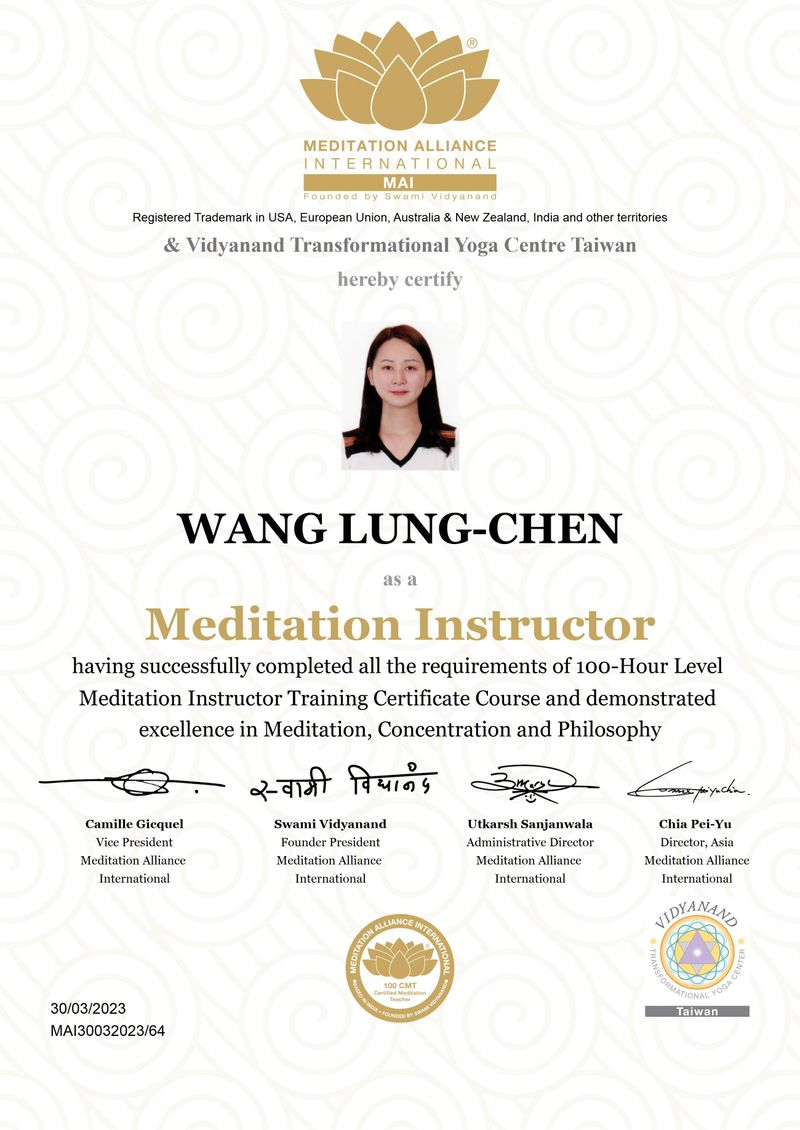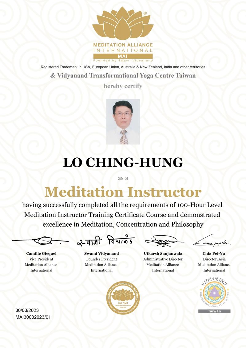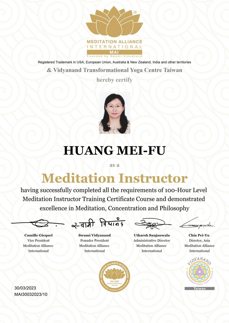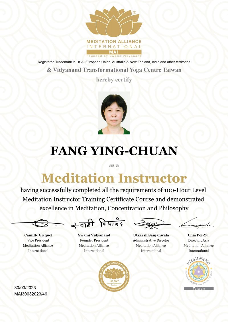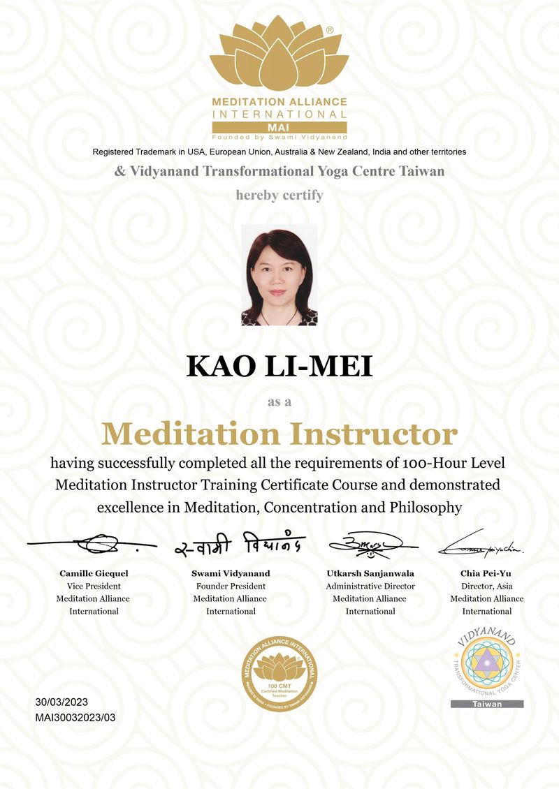 《2023結業證書》MAI 100 小時國際冥想靜心指導員課程
