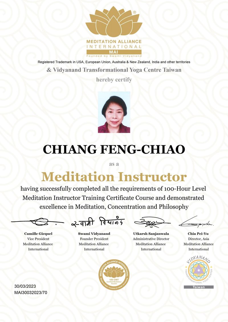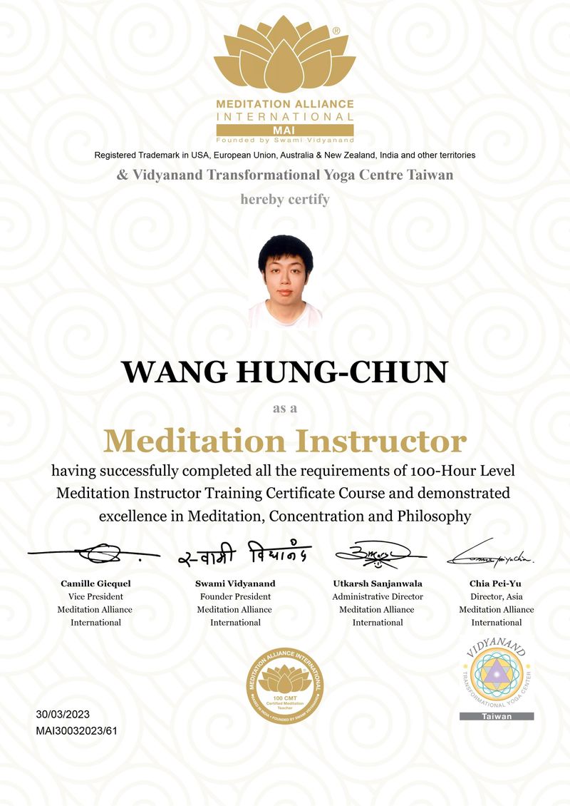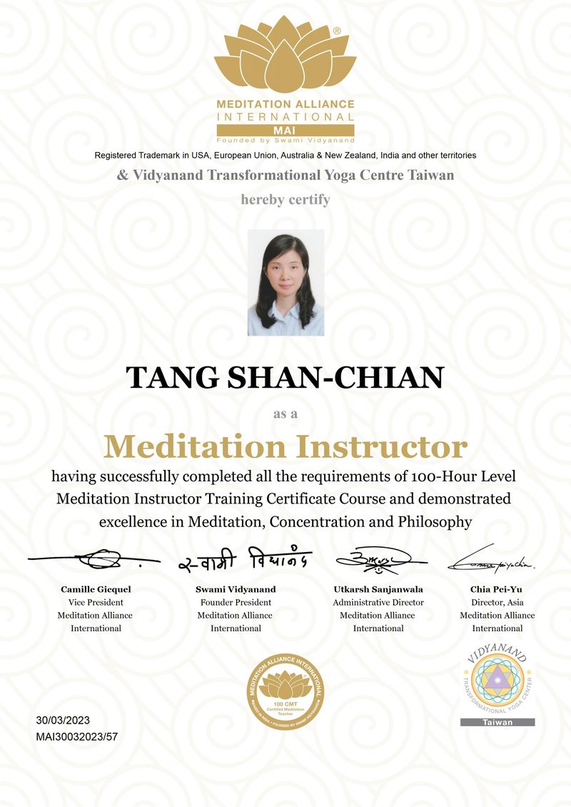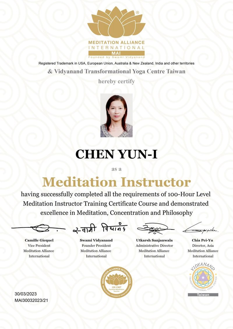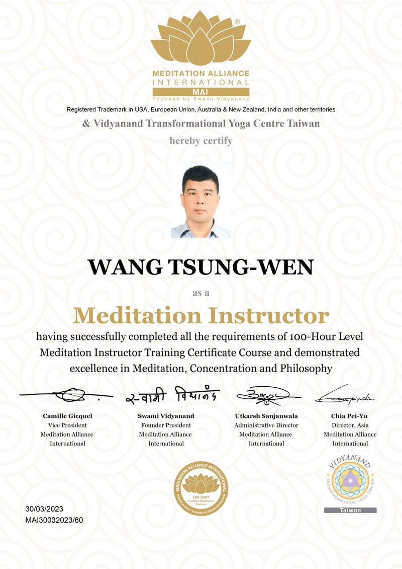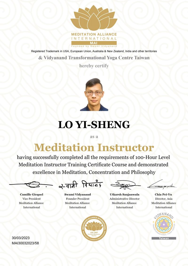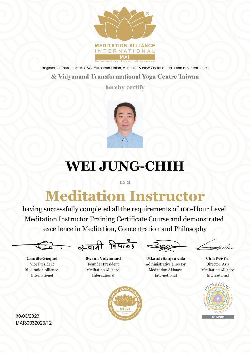 《2023結業證書》MAI 100 小時國際冥想靜心指導員課程