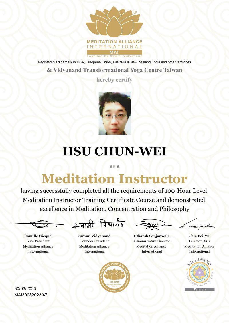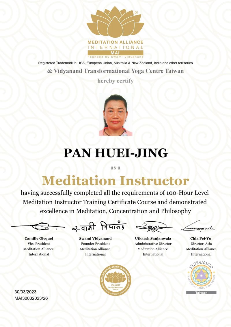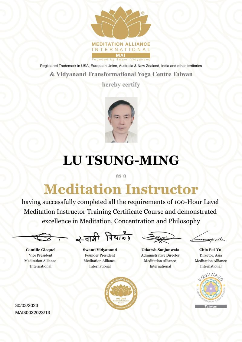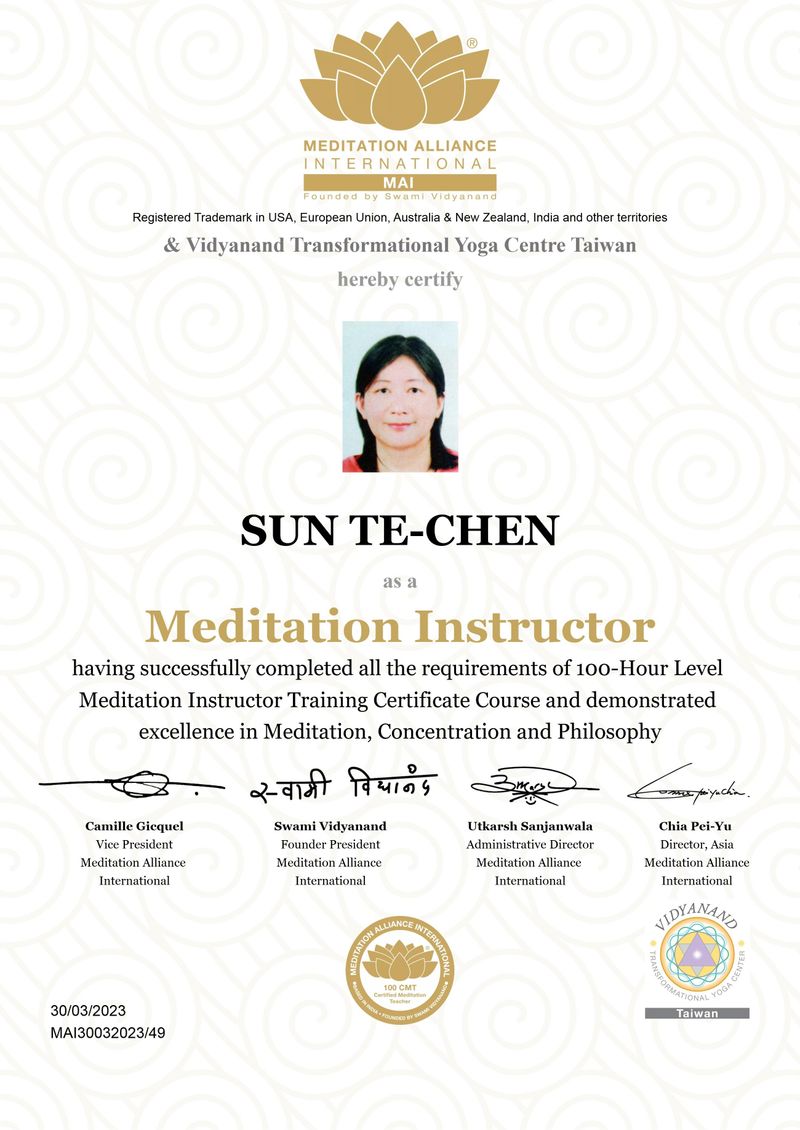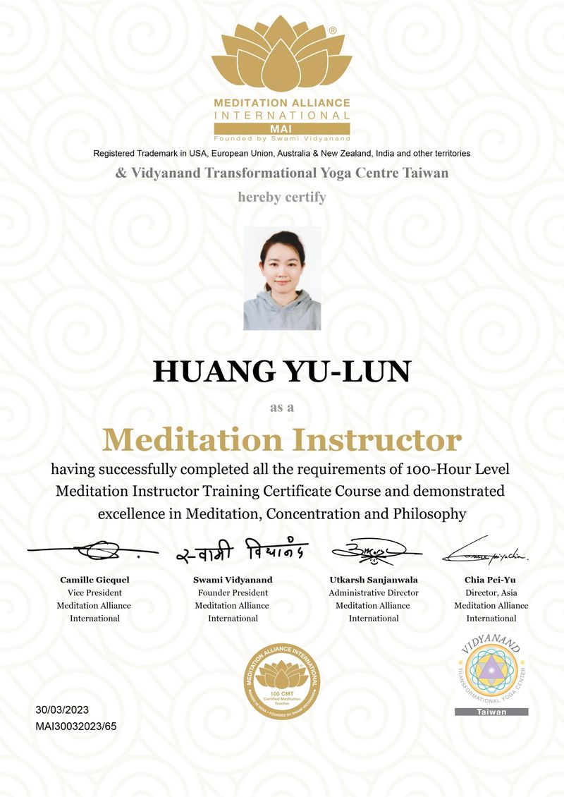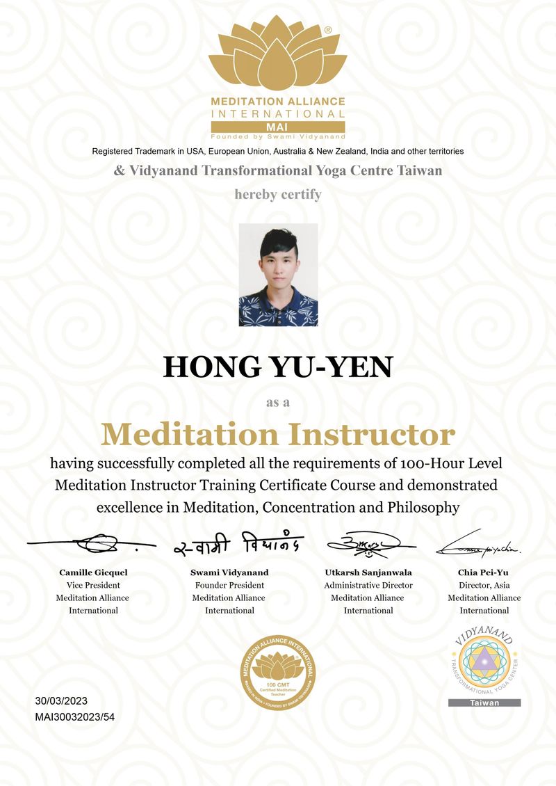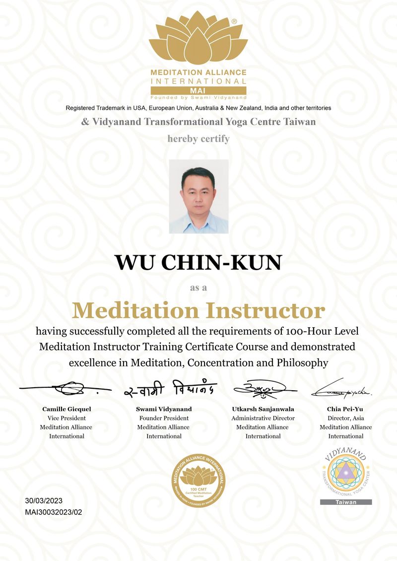 《2023結業證書》MAI 100 小時國際冥想靜心指導員課程