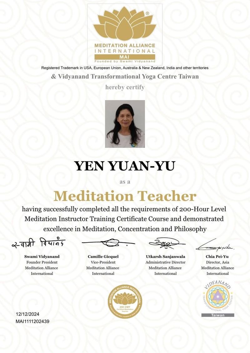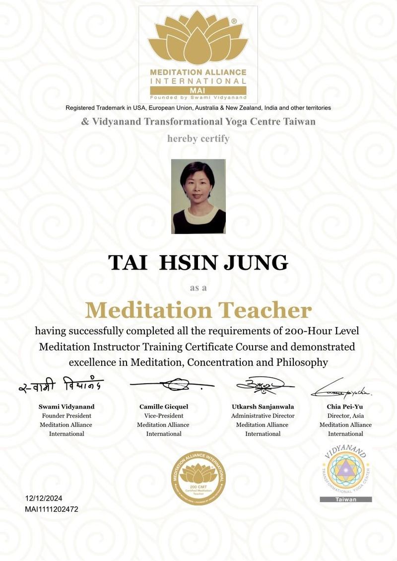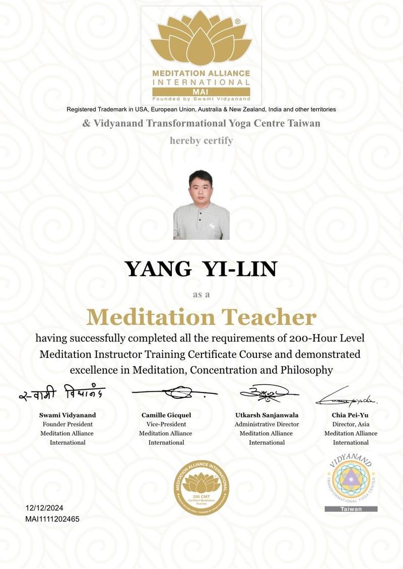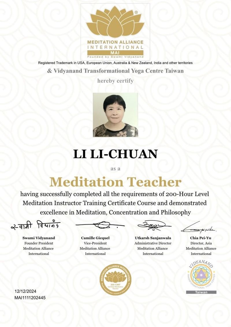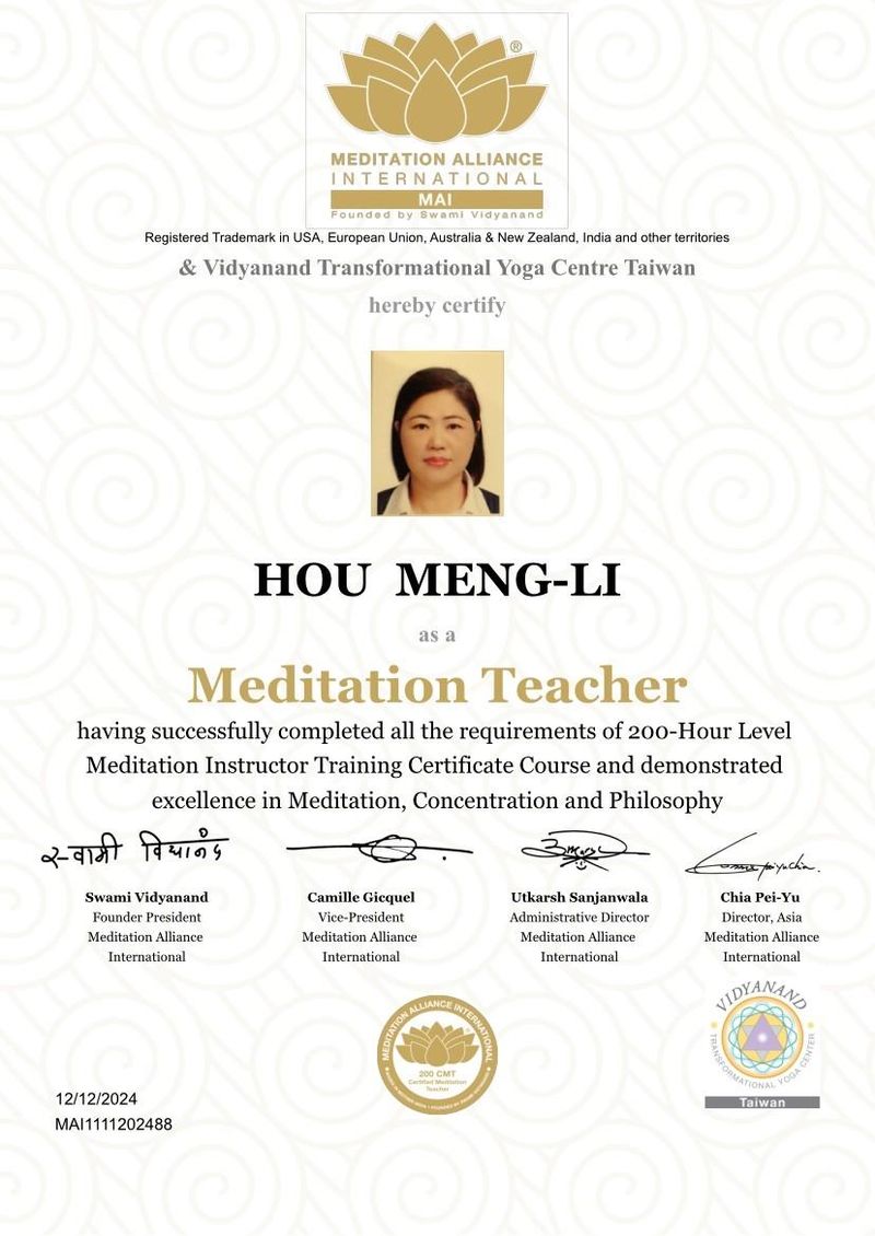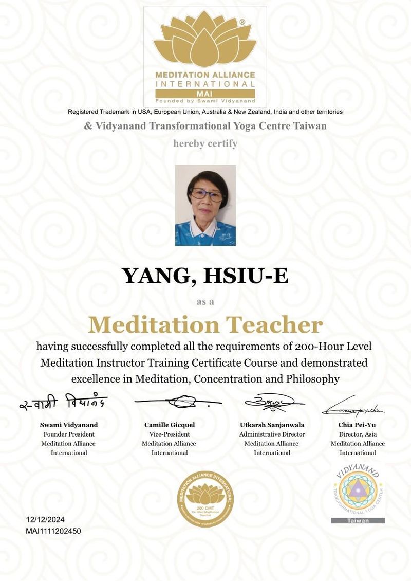 《2024結業證書》MAI 200 小時國際冥想靜心師資課程