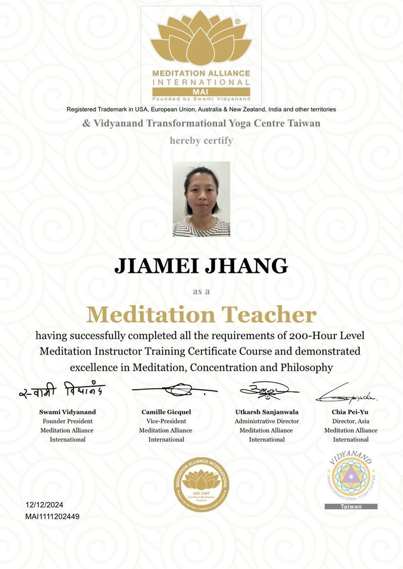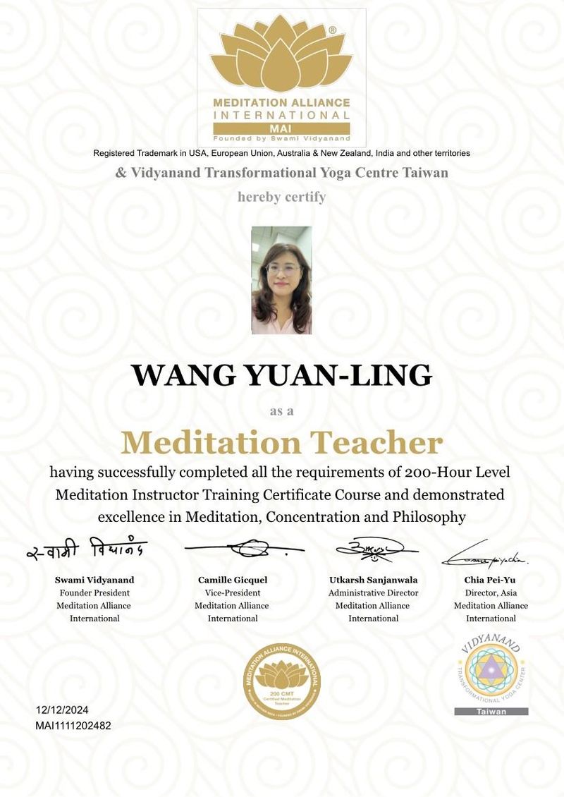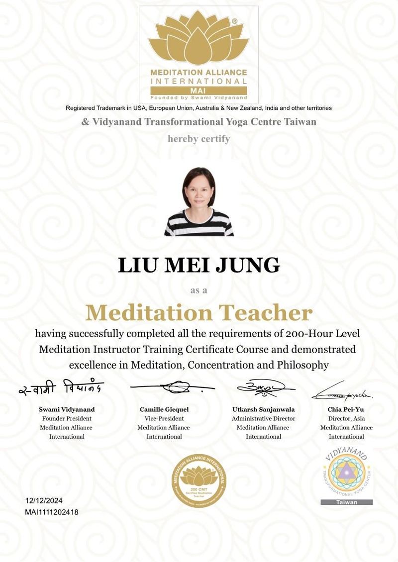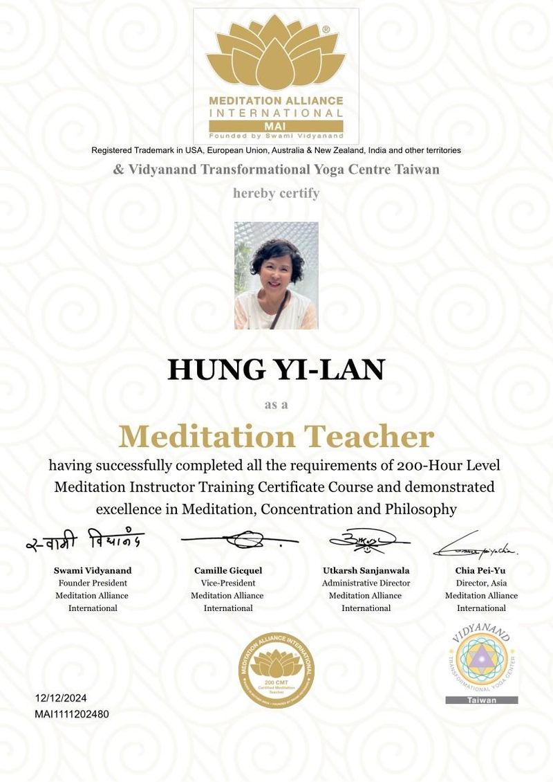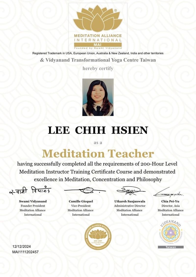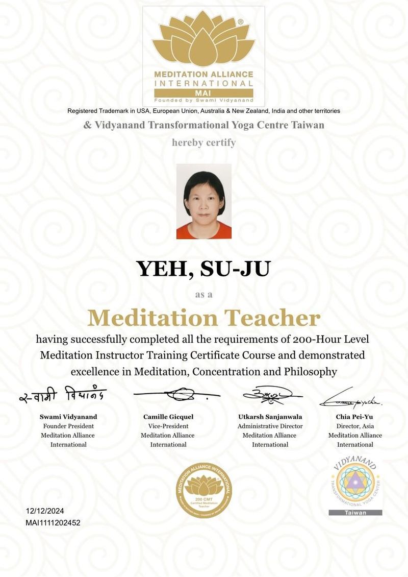 《2024結業證書》MAI 200 小時國際冥想靜心師資課程