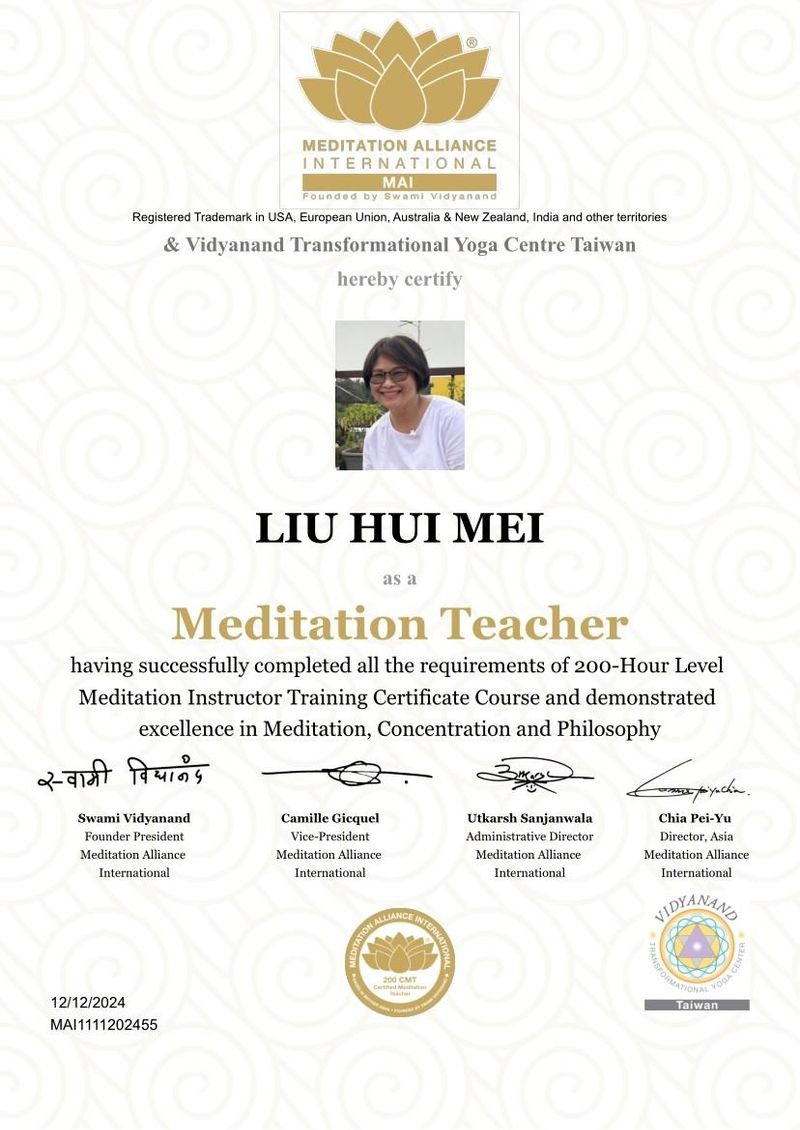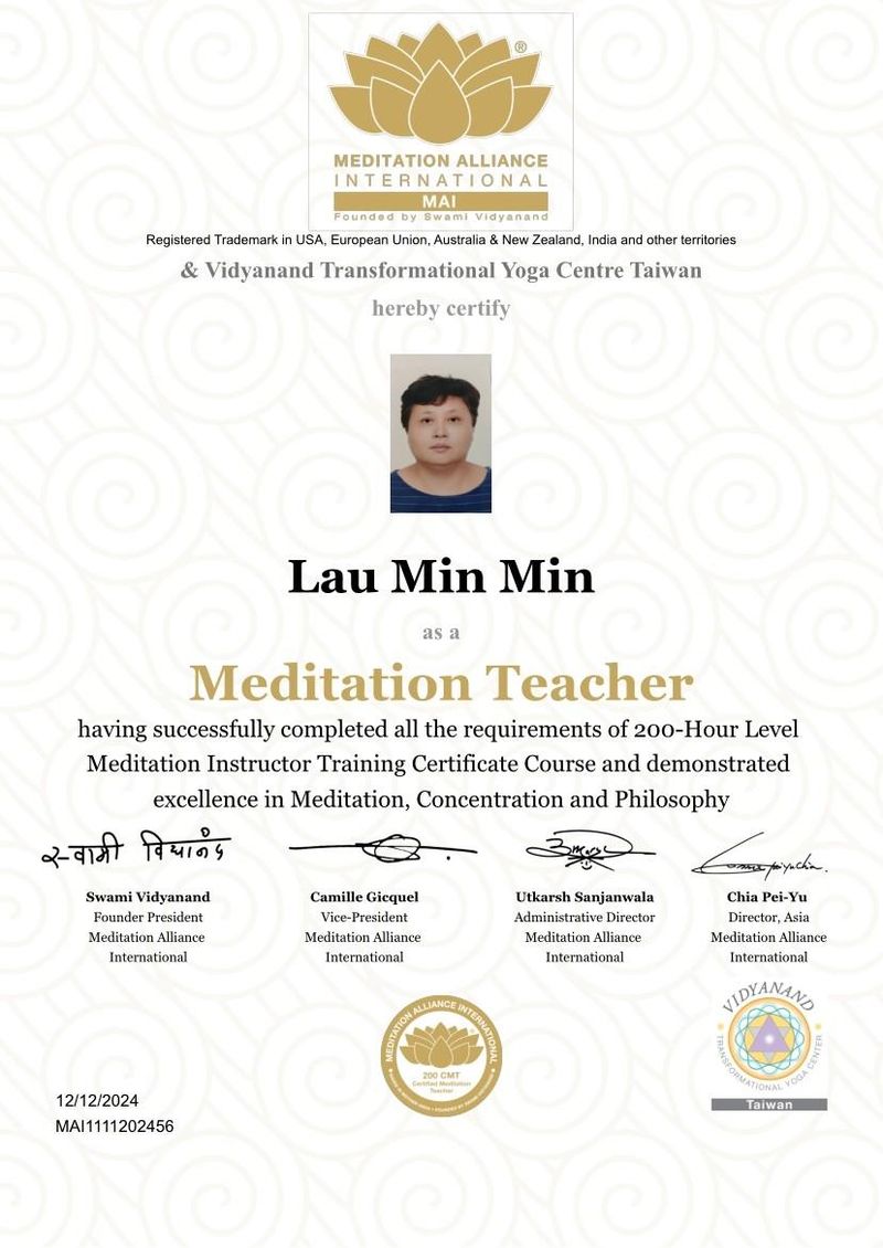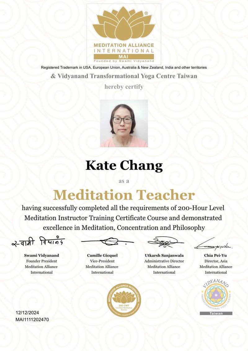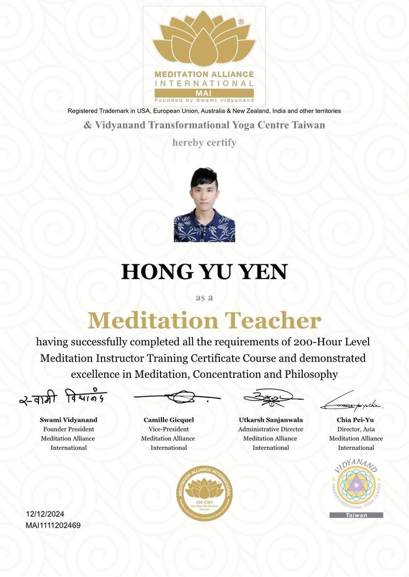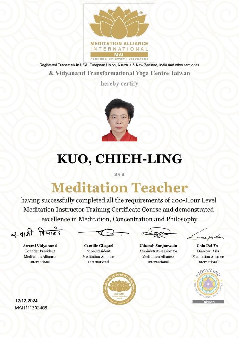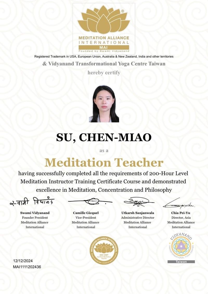 《2024結業證書》MAI 200 小時國際冥想靜心師資課程