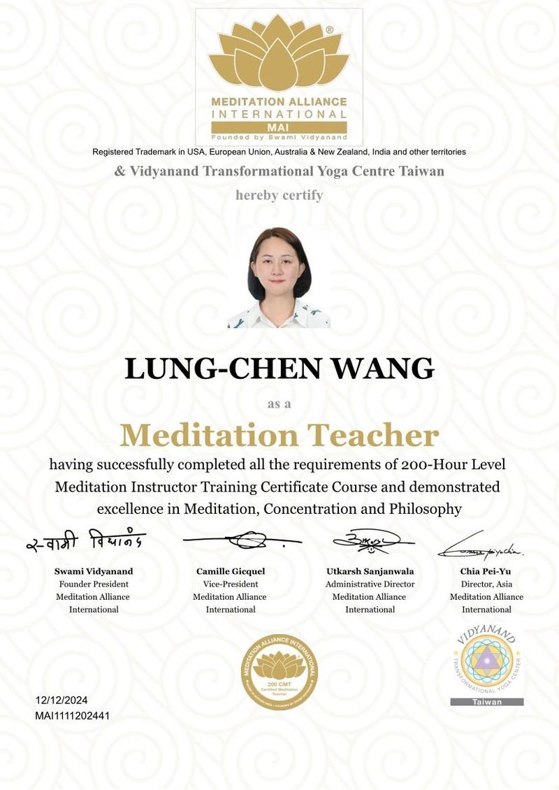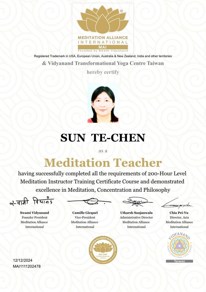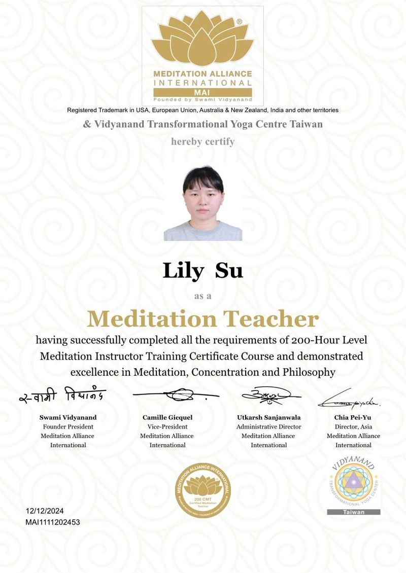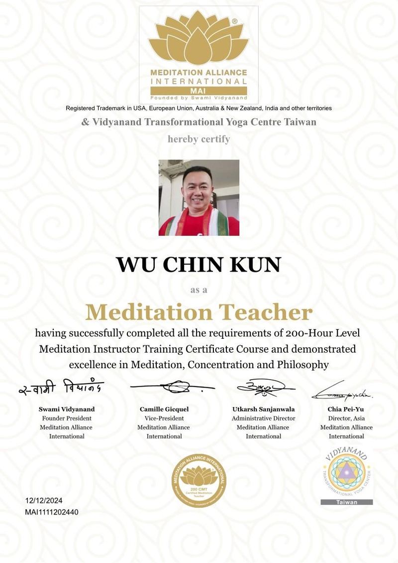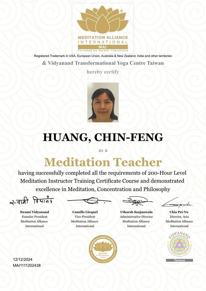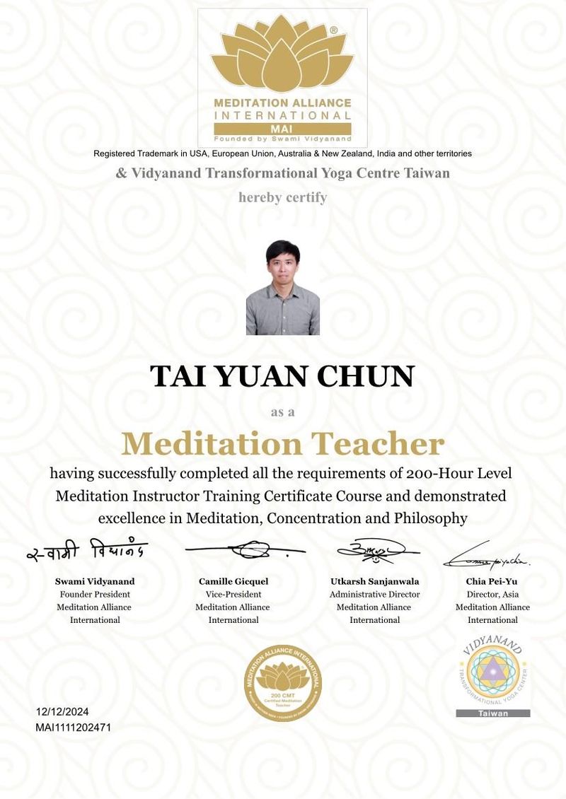 《2024結業證書》MAI 200 小時國際冥想靜心師資課程