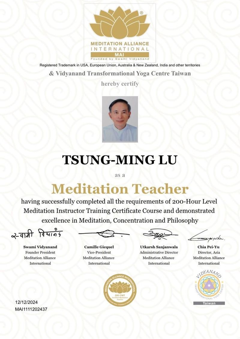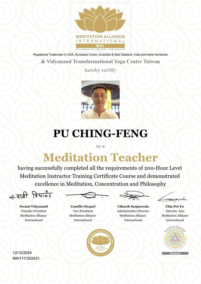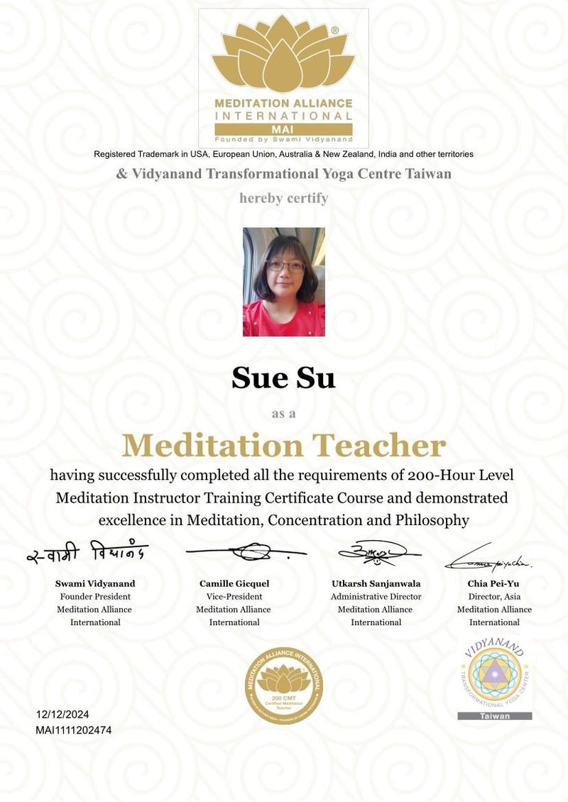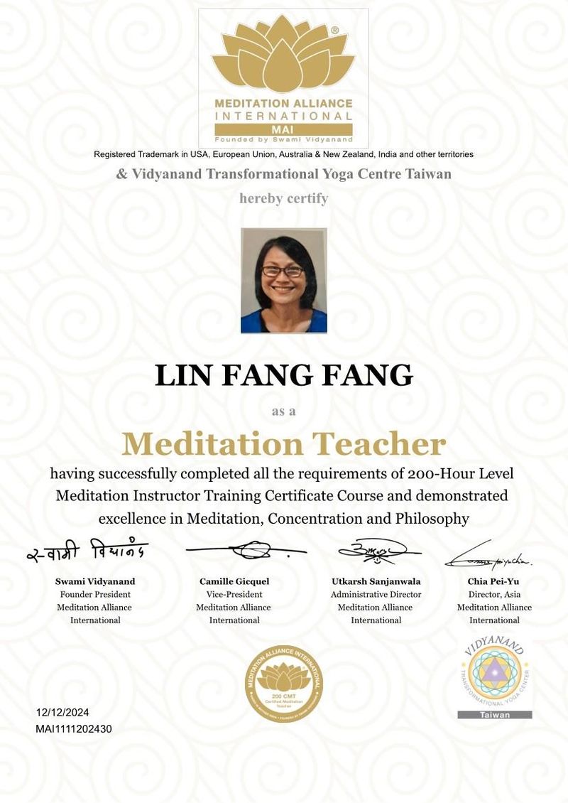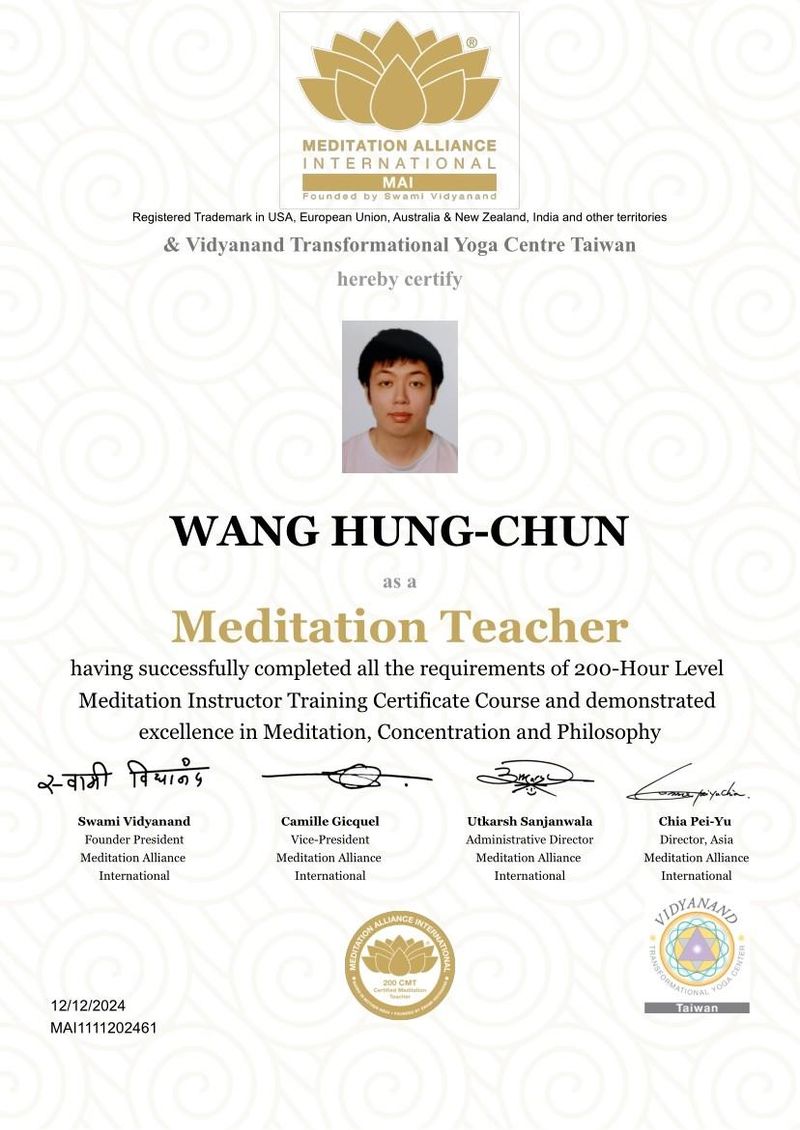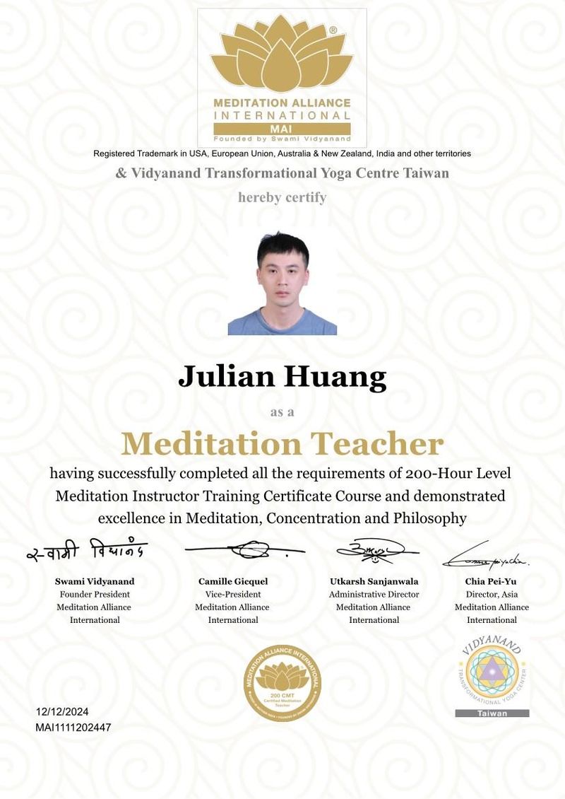 《2024結業證書》MAI 200 小時國際冥想靜心師資課程