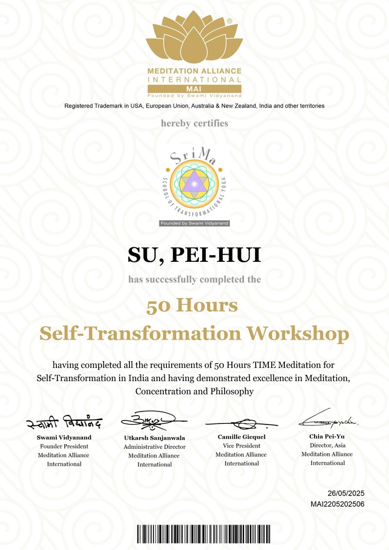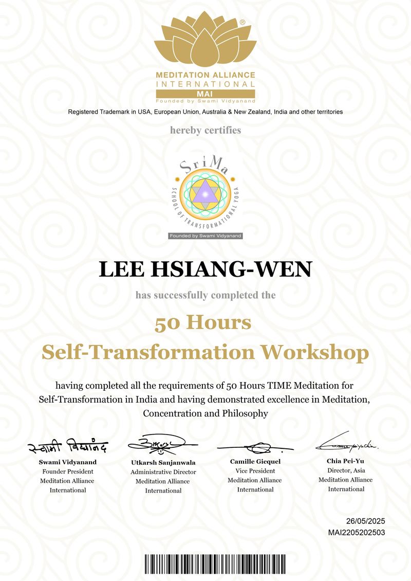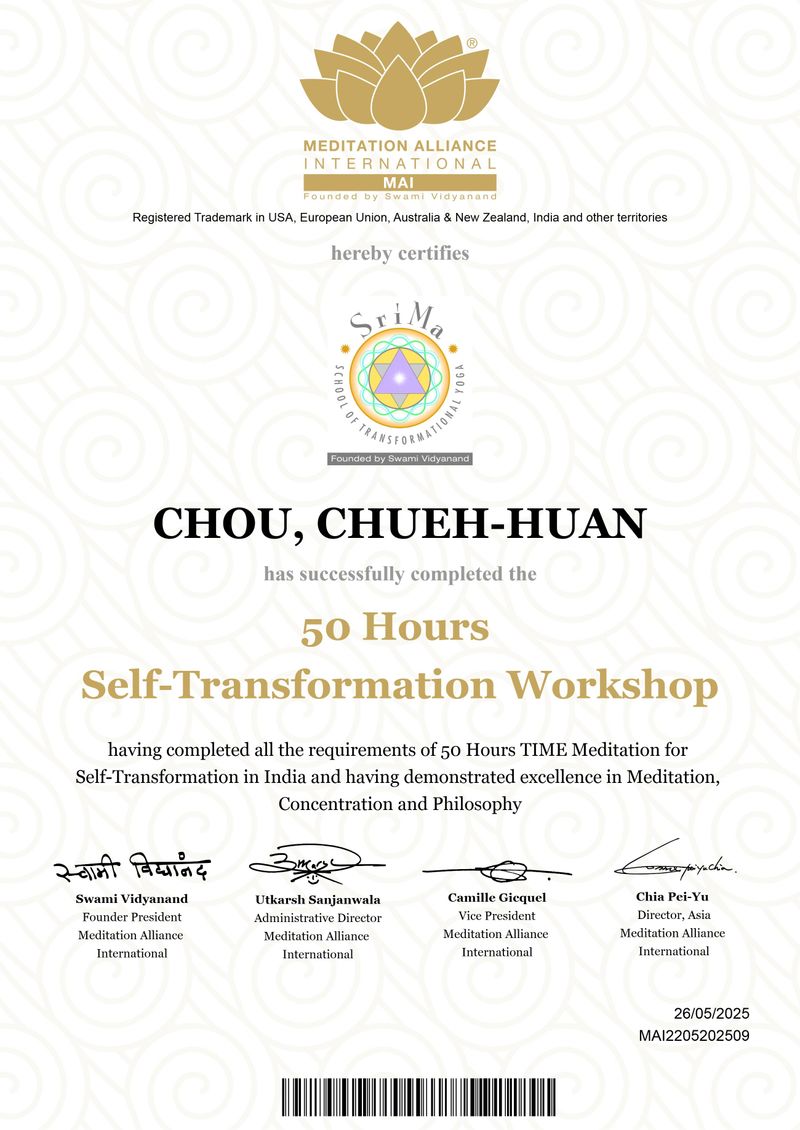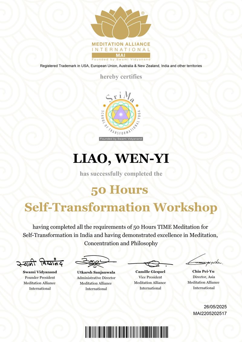 《2025 結業證書》MAI 50小時 南印度 頻率轉化瑜伽之旅
