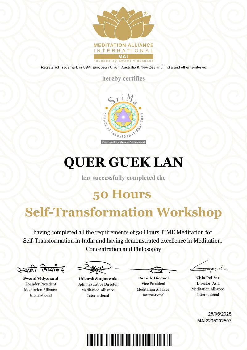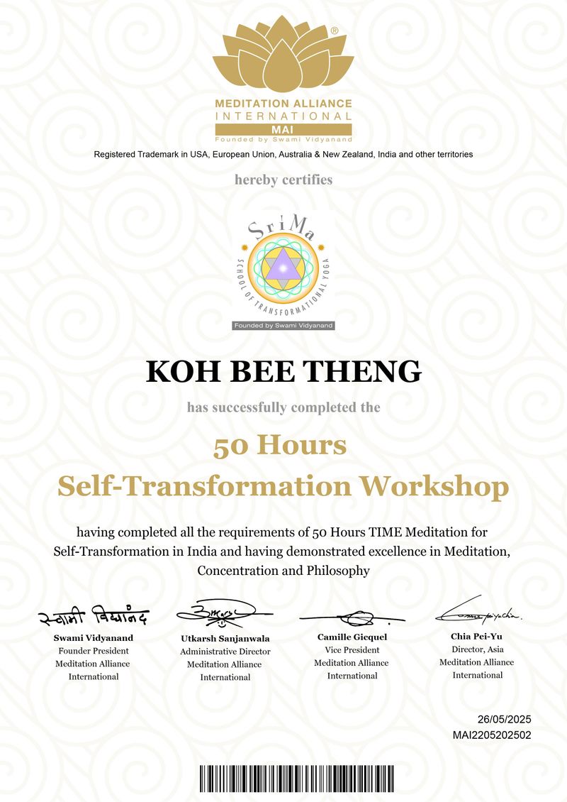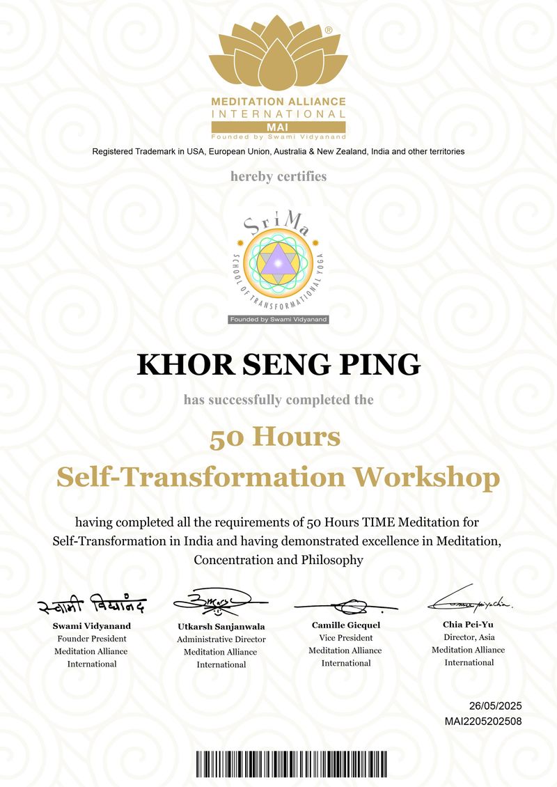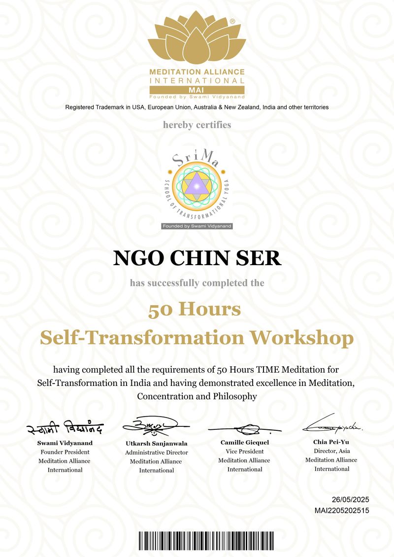 《2025 結業證書》MAI 50小時 南印度 頻率轉化瑜伽之旅
