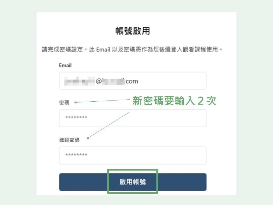 - 可直接到頁面下方點選「啟用帳號」,設立新密碼。