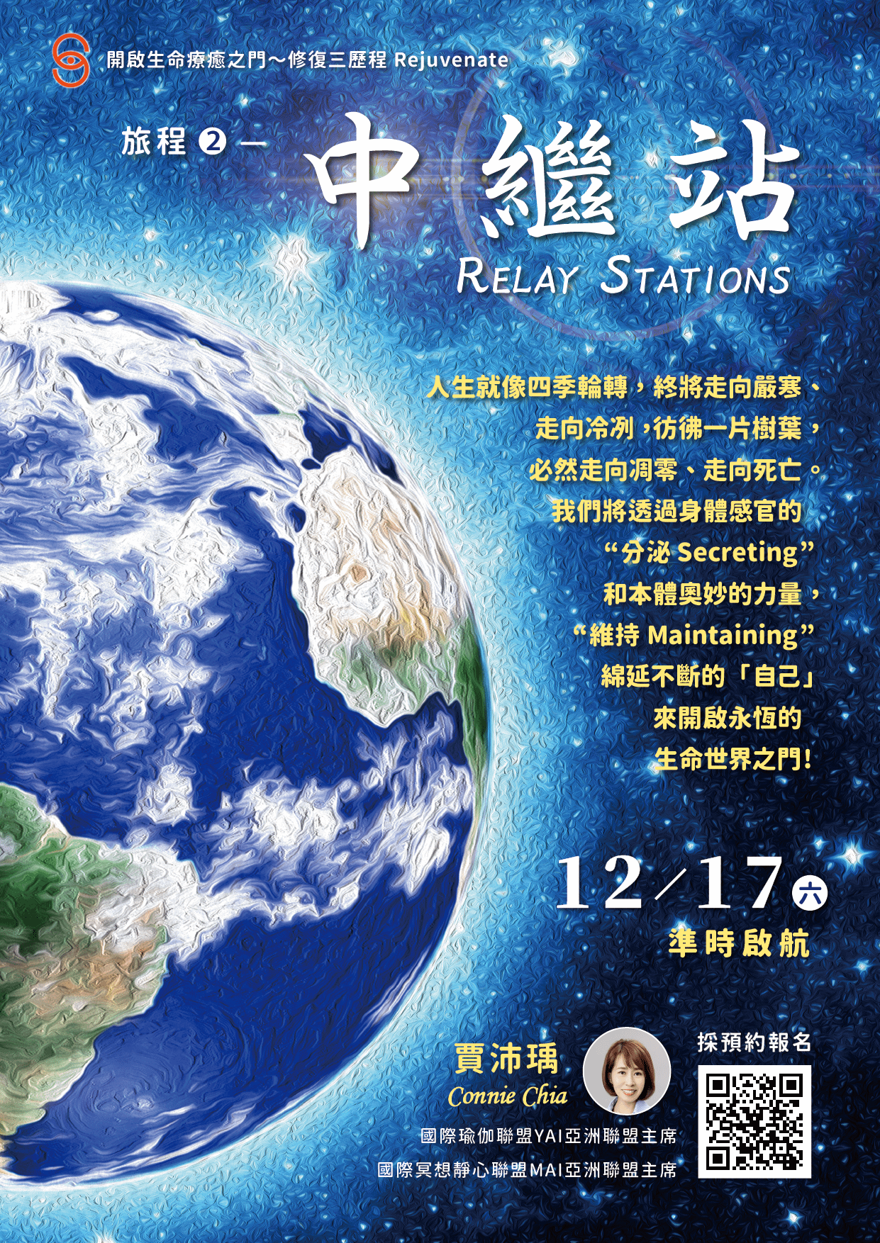 現今環境、科技、社會和人類意識的變化深深地影響著我們,也影響著周遭的親友們,我們需要建立更多的自我保護及創造更多的能力來復原自身的活力。Connie講師以自身經歷的自我實證、將實踐「修復歷程」的經歷,歸納、整理出「生命療癒」的重要精華,課程內容有70%的引導實作,30%的基礎概念,讓我們透過直觀自己,找回自己的天賦,有意識的重新點燃靈性發展的驚奇和喜悅! - 修復三歷程 Rejuvenate: