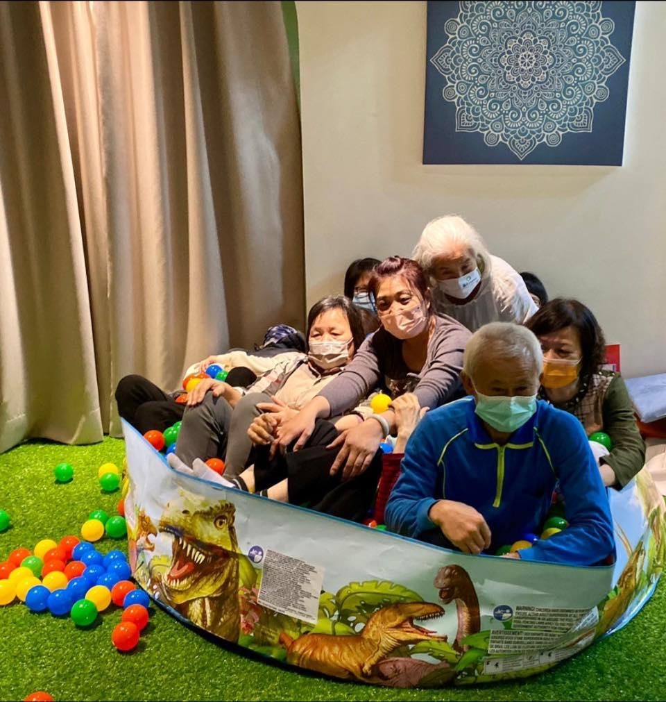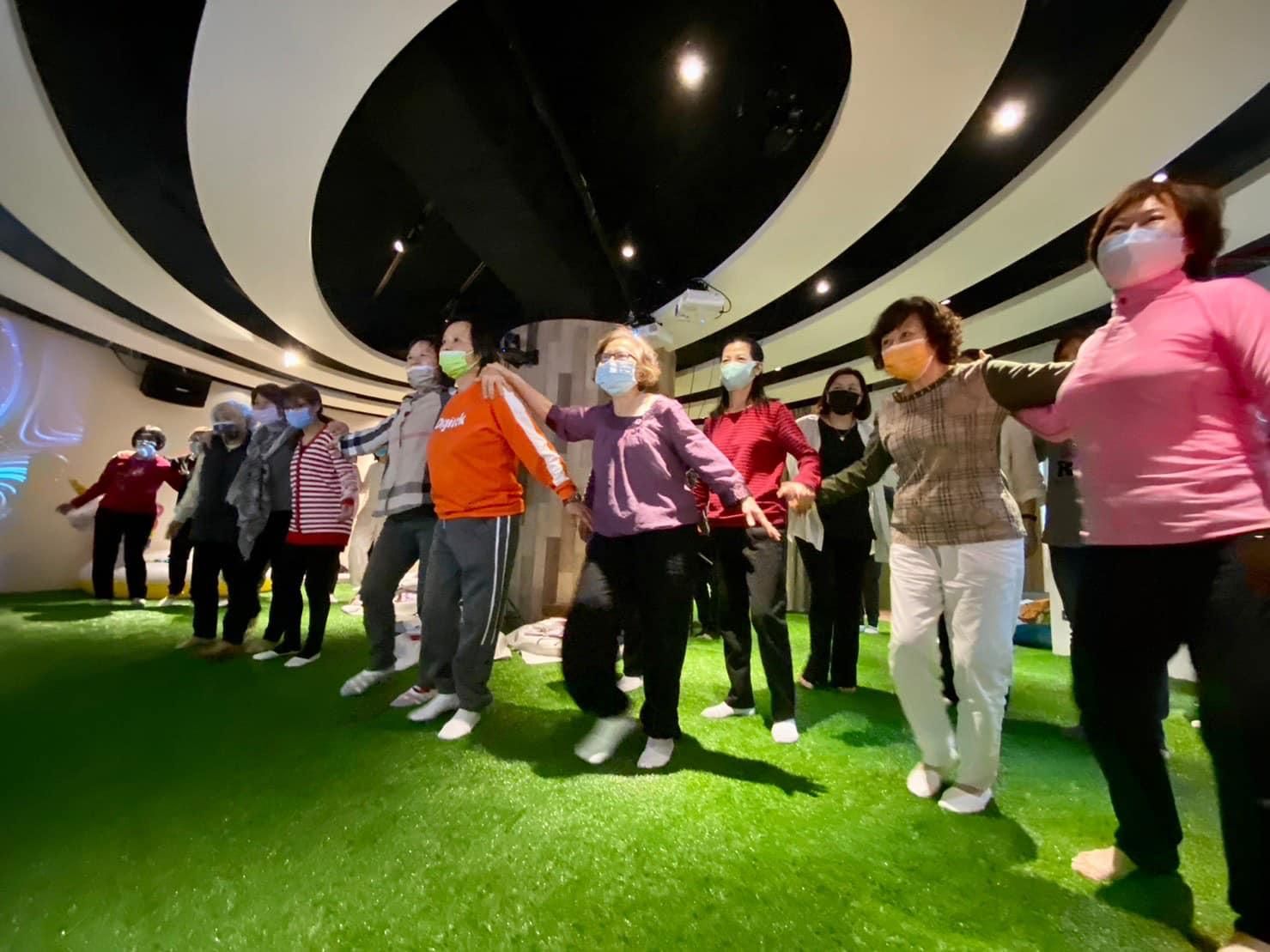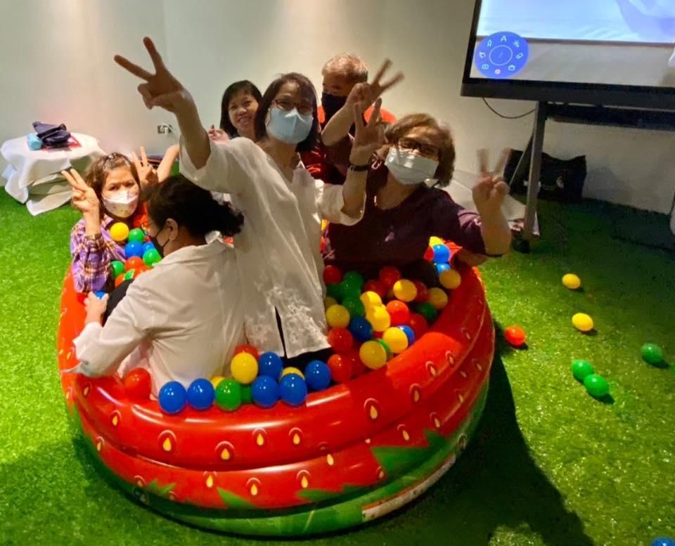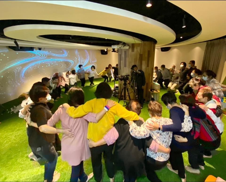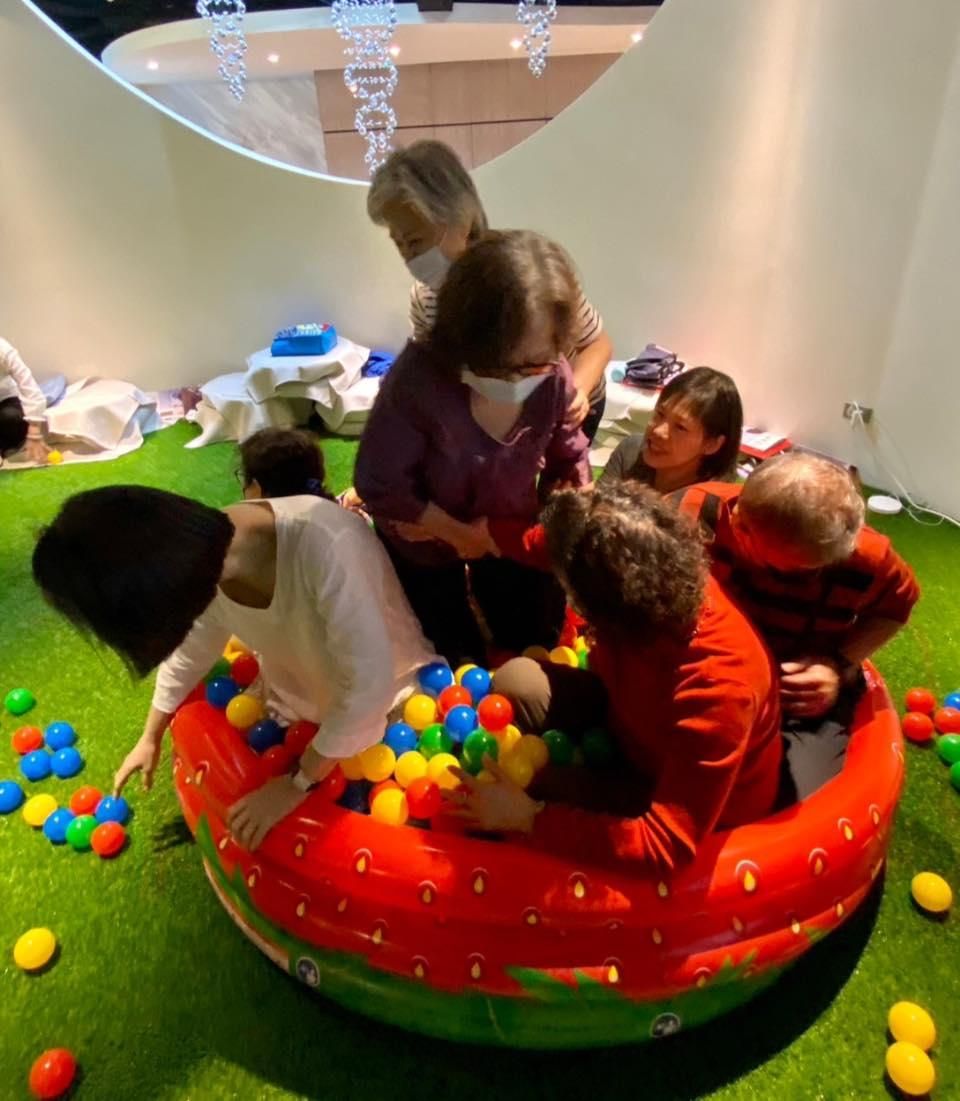 」她讓大家從遊戲中學習”平衡覺+體動覺”的理論—體驗童趣、體會童心,大家在充滿好奇心的驅使下,開懷大笑地翻滾,這「當下的一念心」就像回到孩提時的「初心」。這群年齡加起來幾千歲的老