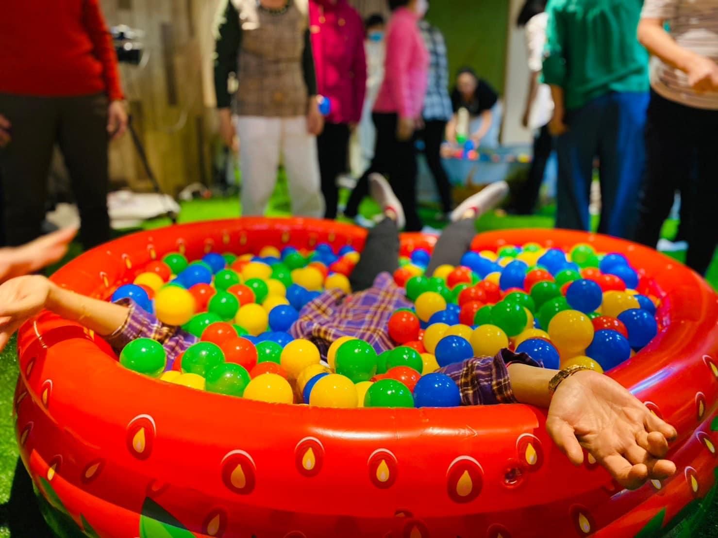 般第一次跳進充滿玻玻球的泳球池裡