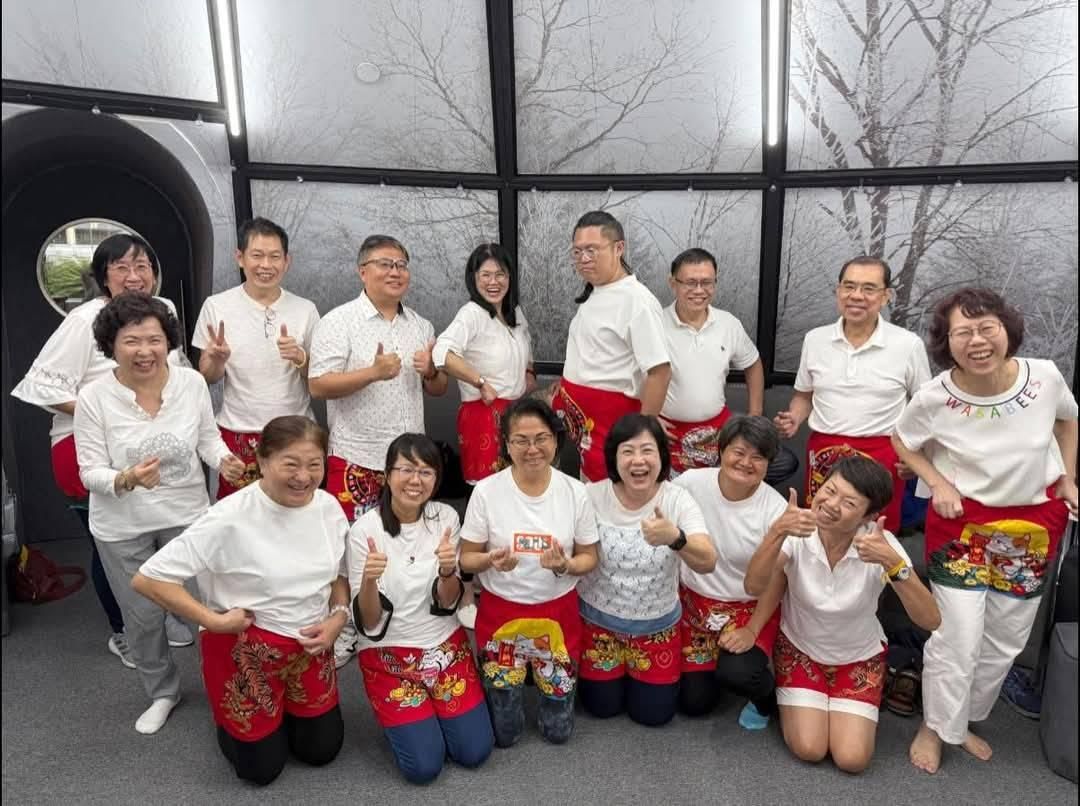 我们在结束课程前,都开开心心的《開》—財庫 (我们穿上了总监送的红红发财💰「裤」)。真的是有趣又充满笑声。😆