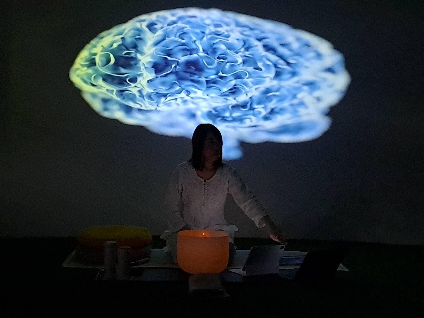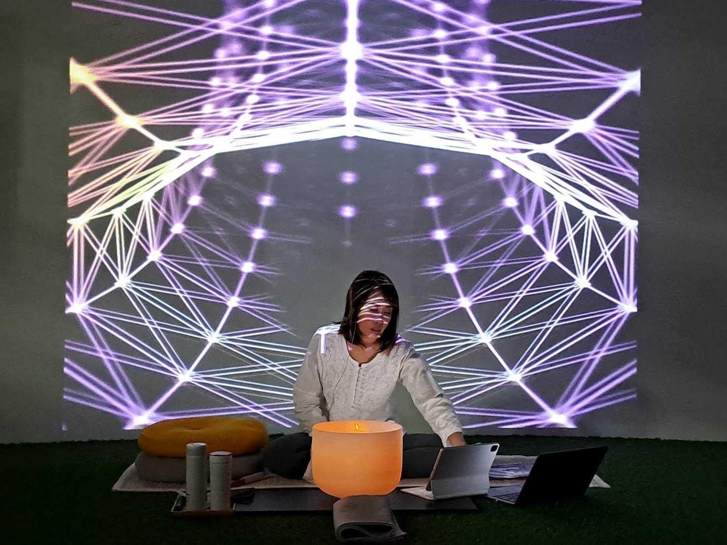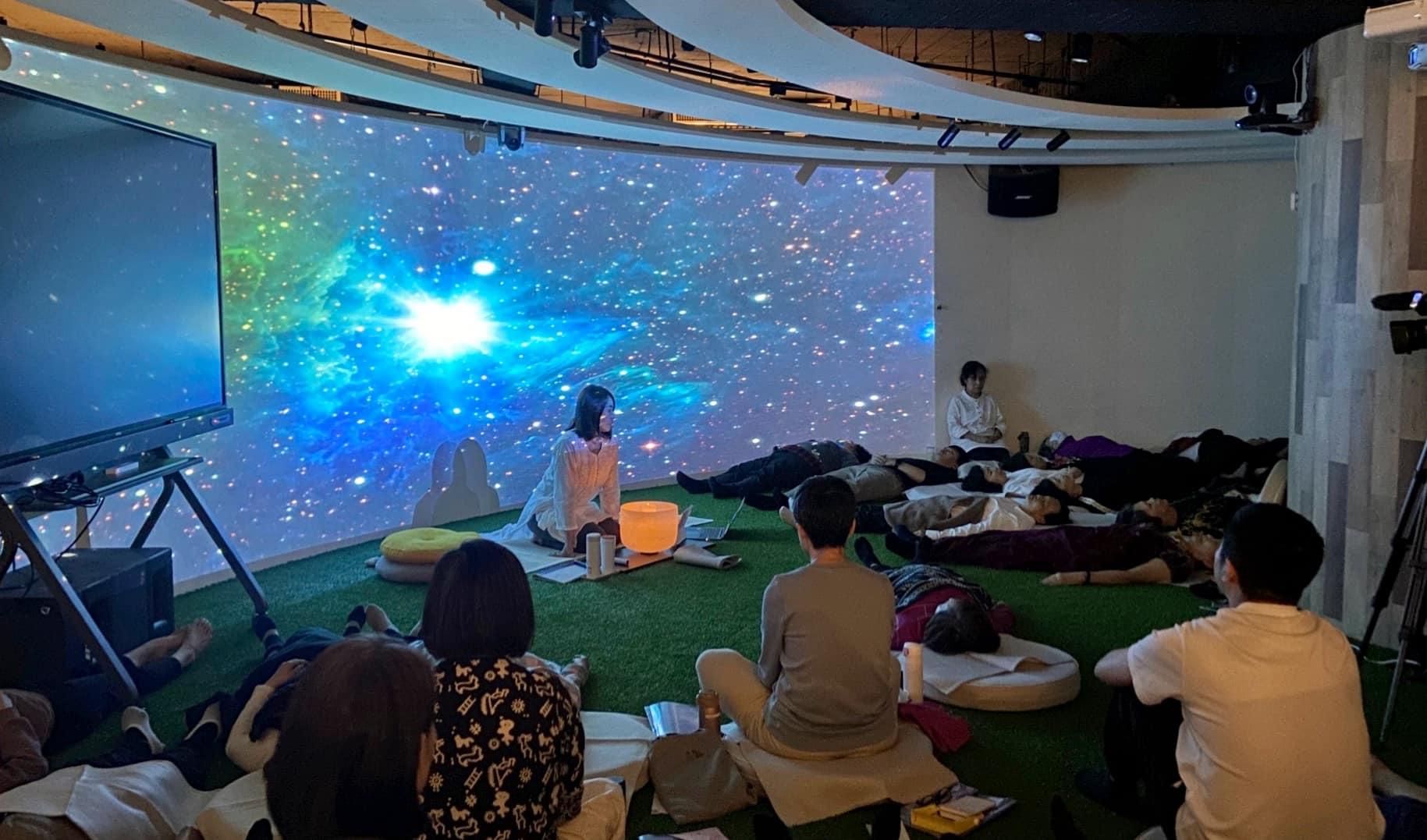 實作開啟在魔鐘👂環繞的空間,第一聲宇宙母親的呼喚,瞬間感到靈性高我衝出☄️雲霄,進入無動力的宇宙空間🌌,隨著音樂波頻的起伏共振著,內在細胞也隨之共鳴振盪,身體開始持續溫熱起來;接著進入微觀世界裡,宇宙心流🫧竄流在體內,順著血液的流動,創造著屬於自己修復與療癒的修復旅程💞。