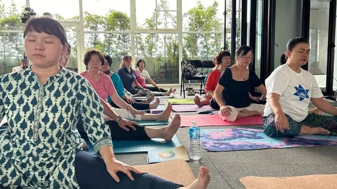 國際YAI/MAI 亞洲聯盟主席Connie Joyti 女士與T.I.M.E整體轉化冥想教育創始人Swami Vidyanand大師及國際YAI /MAI 歐洲聯盟主席Camille Gacquel 女士齊心梵唱,大家在音頻共鳴中感到無比平靜、放鬆,療癒著內在己身的心靈喜悅。