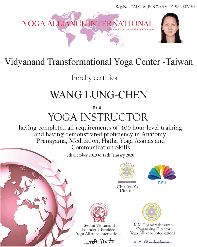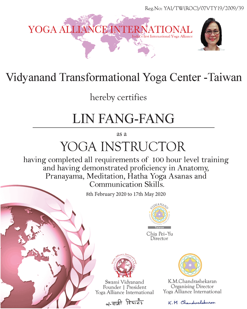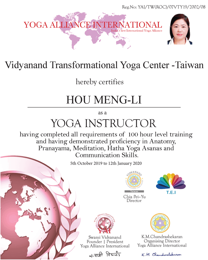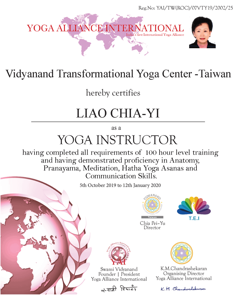 《2020 結業證書》YAI 100 小時國際瑜伽指導員課程